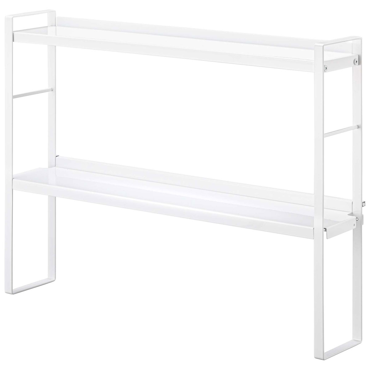 伸縮自在でスッキリと収まります! 用途に合わせて幅を調整できる便利な上下2段使える省スペースな収納棚、TOWER 伸縮収納ラック2段。食器棚の中でマグボトルやお皿、キッチンカウンターの上で家電類や大きめのジャグボトルなどの収納にも便利です。置き場所に困る2?のジャグボトルなどの収納も可能です。 電気ケトルなどの調理家電も収納! 伸縮可能だから食器棚やパントリーの中のスペースを有効活用!上棚にはマグボトル下にはキッチン小物などを収納すると便利。食器類やグラス、マグなども上下2段に収納可能。耐荷重約5kgだから、普段よく使う電気ケトル、コーヒーメーカーなどの調理家電も収納可能です。 商品の情報 ・ブランド:YAMAZAKI(山崎実業)/日本 ・ジャンル:収納ラック ・主な素材:スチール 粉体塗装 ・生産国:中国 ・サイズ:約W270〜450xD200xH152mm ・耐荷重:約5kg ・内容物:本体/六角レンチ/スパナ ・その他:お客様組立て品となります。 ・注意事項:網かごは付属しません。 この商品の仲間たち 山崎実業 TOWER 伸縮収納ラック2段 ホワイト 山崎実業 TOWER 伸縮収納ラック2段 ブラック