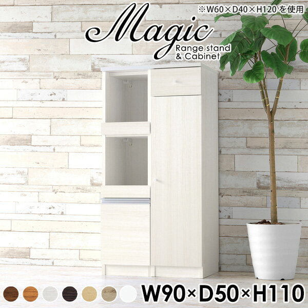 キッチン周りのすきま収納におすすめ!スライドレール付き引き出しmagic レンジ台×キャビネット W90×D55×H110 木目サイズサイズ:約幅900 奥行き550 高さ1100 mm材質[天板・スライド棚]メラミン樹脂化粧合板[前板]ブラウン・ダークブラウン・チーク/デルナチュレ化粧合板ホワイト/ポリエステル化粧合板ナチュラル・ホワイトウッド・オーク/強化紙[側板・内部]プリント化粧合板カラーブラウン/ダークブラウン/ホワイト/北欧チーク/ナチュラル/ホワイトウッド/オークからお選び下さい。※モニターなどの閲覧環境によって、実際の色と異なって見える場合がございます。仕様日本製天板・各ユニット分割式でお客様連結作業あり連結金具付属耐荷重:天板50kg、スライド棚15kg、棚板5kg可動棚板:3枚棚板の厚み:20 mm背面化粧仕上げ(一部タッカー留め)コンセント1口付き(合計1500Wまで使用可能)2箇所ブランド 送料送料無料※北海道・沖縄・離島は送料別途お見積もり。納期ご注文状況により納期に変動がございます。最新の納期情報はカラー選択時にご確認ください。※オーダー商品につき、ご注文のキャンセル・変更につきましてはお届け前でありましても生産手配が済んでいるためキャンセル料(商品代金の50%)を頂戴いたします。※商品到着までの日数は、地域により異なりますご購入時にお届け日の指定がない場合、最短日での出荷手配を行いメールにてご連絡させていただきます。配送・開梱設置について※北海道・沖縄・離島は送料別途お見積もりいたしましてご連絡いたします。【ご注意ください】離島・郡部など一部配送不可地域がございます。配送不可地域の場合は、通常の配送便での玄関渡しとなります。運送業者の便の都合上、地域によってはご希望の日時指定がお受けできない場合がございます。建物の形態(エレベーターの無い3階以上など)によっては別途追加料金を頂戴する場合がございます。吊り上げ作業などが必要な場合につきましても追加料金はお客様ご負担です。サイズの確認不十分などの理由による返品・返金はお受けできません。※ご注文前に商品のサイズと、搬入経路の幅・高さ・戸口サイズなど充分にご確認願います。→ 詳しくはこちら備考【スライド蝶番を使用している扉の調整方法】商品到着時、また長期使用で生じる扉のズレや歪みは、蝶番の調節ネジで扉部分を前後・左右へ移動して調節をお願い致します。※製造上の都合や商品の改良のため、予告なく仕様変更する場合がございますので予めご了承ください。当店オリジナル家具を全部見る同じサイズのデザイン違いはこちら管理番号0000ac002024/0000ac002025/0000ac002026/0000ac002027/0000ac002028/0000ac002029/0000ac002030/メーカー希望小売価格はメーカーカタログに基づいて掲載しています■おすすめラインナップこのページは magic レンジ台×キャビネット 幅90×奥行55×高さ110cm 木目 のページです。レンジ台には家電製品を置いてもスムーズに出し入れできるスライド棚がついており、1口コンセント付きです。(合計1500Wまで使用可能)引き出しはたっぷり入る深めのタイプで、鍋やフライパンのように嵩張るものもまとめて片づけられます。キャビネットは小物類の収納に便利な引き出し収納と、可動棚で仕舞うアイテムのサイズに合わせた収納ができる扉収納になっています。ツヤのある、高級感を感じさせるメラミン樹脂化粧合板を使用した天板。擦り傷や熱に強く、汚れてもサッと拭き取りやすいのでキッチンの作業スペースやダイニングでの利用におすすめ。『magic(マジック)』はレンジ台と様々な組み合わせを楽しめるシリーズです。サイズ展開も豊富なので、複数を並べることで壁面いっぱいに収納スペースを作ったり、作業台を中心にして広々としたワークスペースにすることも可能です。