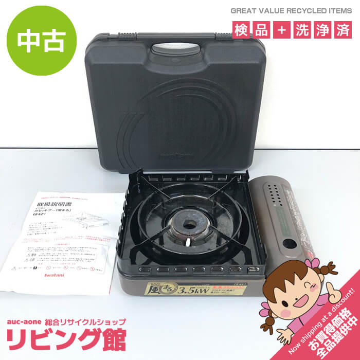 当店規約について ご注文前に必ずお買い物ガイド をご覧ください。 ご注文いただきました場合には当店の規約に同意されたものと致します。 メーカー・商品名 イワタニ カセットコンロ 型番 CB-KZ-1 年式 2014年製 主な仕様 ●外形寸法 幅359×奥行278×高さ115mm ●本体重量 約2.2kg ●使用ガス ブタンガス ●出力 3.5kW(2500kcal/h 210g/h)気温20?25℃ ●連続燃焼時間 イワタニカセットガス使用時:約66分 ●PSマークの種類 PSLPG ●届出事業者名 株式会社旭製作所 ●登録検査機関名称 JIA(一般財団法人 日本ガス機器検査協会) 付属品 画像に写っているもので全てとなります。 その他 こちらの商品はUsed品のため多少の傷、汚れ等あります。 五徳やコンロ内に焦げ付き等があります。(画像赤丸部分) 目立つ部分につきましては記載するよう努めますが全てを記載することは難しいため 使用に伴う傷・汚れおよび中古の範囲内と判断した部分は記載しておりません。 中古でありますことを何卒ご理解の上、お願い致します。 送料について 送料無料 ※こちらの商品は沖縄・離島への発送は出来ません。ご了承下さい。 お問合せ 株式会社A-one リビング館 北海道札幌市白石区本郷通9丁目南3-7 岡村ビル1F(本郷通商店街内) TEL 011-376-5235 営業時間 平日 10時00分?17時30分(土日祝休み)
