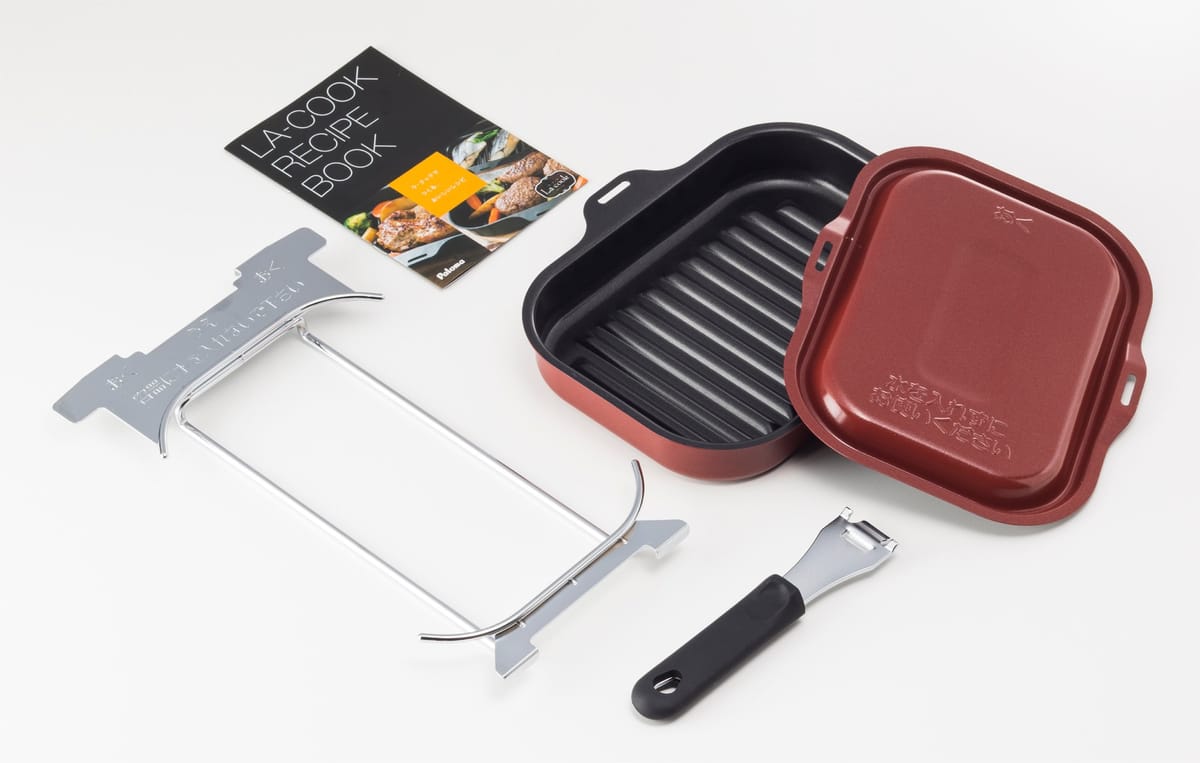 〇Paloma(パロマ)のガスコンロのグリルで使える「La-cook(ラ・クック)セット」です。 〇グリルに入れて使うグリルパン(波形深皿プレート)です。本体深さが約4cmでしっかりと深さがあり、カップケーキなども作れます。 〇両面同時に焼き上げてラクに美味しく調理。波形プレートで余分な脂を落としてヘルシーに仕上げられます。焼き魚は高温でムラなくふっくら調理、メインディッシュからスイーツまで多彩な料理が楽しめます。 〇ラ・クックは、軽い力で扱えて 使いやすいハンドルがあるので運ぶのもラクラク。 ふた開け用の差し込み口が2か所で使いやすくなっています。