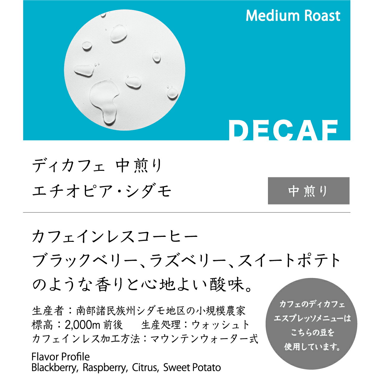 【こんな人におすすめ】 ・コーヒーが大好きだけど今はカフェインが取れない方 ・寝る前に飲む用のコーヒーを探している方 おいしいデカフェブレンドはいかがですか。 今回、バンディビーンズでは世界各国のデカフェを吟味し、念願のデカフェブレンドを完成する事が出来ました。 店頭でも妊婦さんや寝る前に飲む用と大人気のコーヒー豆へとなっております。この機会にデカフェブレンドを是非お試し下さい。 ※当店で使用しておりますでカフェはウォータープロセスという手法でカフェイン除去しております。 生豆を水に浸し、カフェインを溶解させ、カフェインのみをマイクロフィルターで濾し、カフェイン以外の成分を元の生豆に戻す製法です。 -----検索キーワード----- スペシャルティコーヒー スペシャリティコーヒー すぺしゃるてぃこーひー すぺしゃりてぃこーひー こーひー ドリップ 自家焙煎 お土産 ゴールデンウィーク GW 帰省土産 バレンタインデー バレンタインデイ Valentine's day ホワイトデー ホワイトデイ White Day お花見 ひな祭り 端午の節句 こどもの日 スイーツ スィーツ スウィーツ ギフト プレゼント 女子会 パーティ ハロウィーン ハロウィン Halloween 御礼 お礼 謝礼 お返し お祝い返し ありがとう プチギフト お世話になりました 上質 おしゃれ オシャレ 可愛い かわいい 食べ物 人気 食品 おすすめ お菓子2