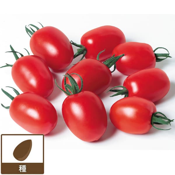 タネ・小袋 甘くて小ぶりなトマトトマト:ミニトマト とってもアイコ 2袋セット[サカタ 野菜タネ 「おうち野菜」シリーズ]おうちで育てて、おうちで食べる。「おうち野菜」は家庭菜園向けの野菜シリーズです。一回使い切りの少量規格なので、初めてタネから育てる方におすすめです。「とってもアイコ」は甘くてちょっと小ぶりなかわいいアイコ。従来のアイコに比べ、果実は一回り小さいミニトマトです。酸味が少なくとっても甘く、よりたくさん収穫できます。初めての方でも育てやすい品種です。まき時:寒冷地3-4月頃、温暖地2-5月頃収穫期:寒冷地7-10月頃、温暖地6-11月頃発芽適温:20-30℃内容量:約12粒[タネまき-植えつけ]発芽適温(地温)を確保します。ポットなどに2-3粒を深さ1cmにまき、土をかけ軽く押さえます。本葉1-2枚ころまでに1本に間引きます。定植は最初の花が咲いたころを目安に、株間50cmで植えつけます。[畑づくりと栽培管理]支柱を立てて、ひもで軽く結びます。わき芽はすべてかきとります。最終収穫目標の花房(3-5段)が咲きだしたら、主枝の先端を摘みとります。追肥は、果実が大きくなりはじめるころから、生育を見ながら行います。[収穫]開花後35日程度で色づきはじめます。果実は15-18g前後、ツヤのある赤色、糖度は8度前後になります。割れにくいので、株で十分に真っ赤に熟してから収穫します。トマト:ミニトマト とってもアイコ 2袋セット[サカタ 野菜タネ 「おうち野菜」シリーズ]の栽培ガイド種まきのコツ手作りのシード・テープ春から始める、ベランダ菜園種まきの方法:容器の選び方種まきの方法:色々なタネ