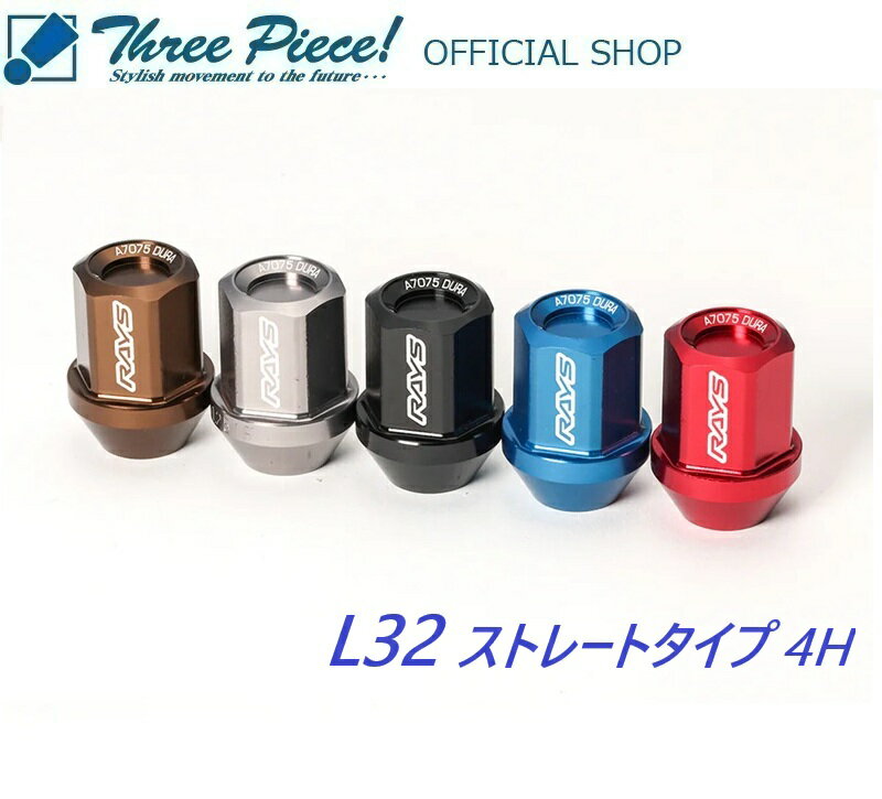 適合車 トヨタ ホンダ マツダ 三菱 ダイハツ 商品名 ジュラルミンロック&ナットセット L32ストレートタイプ 4H用 商品内容 【サイズ】 19HEXナット×12、ロックナット×4、L41キーアダプター19HEX 26φ×1 サイズ/材質:M12×1.5/A7075 26g/1個全長:32mm 材質:A7075 ( ジュラルミン ) 【カラー(アルマイト)】 ブロンズ、ブルー、ブラック、レッド、ガンメタリック ※画像はイメージです 【カラー / 品番】 ブラック/WH-RAYS-L32-1111BK ブルー/WH-RAYS-L32-1112BL レッド/WH-RAYS-L32-1113RD ガンメタリック/WH-RAYS-L32-1114GM ブロンズ/WH-RAYS-L32-1115BR 特長 ・アルミ合金中最高クラスの強度を持つA7075(超々ジュラルミン)を使用した軽量ホイールナット。 ・ナットカラーは5色から選択いただけます。 ・ナット本体の側面にはレーザーRAYSロゴを施しています。 注意事項 ・ホイールによっては装着出来ない場合が御座いますので、ご不明なお客様はご連絡頂けましたらお答えさせていただきます。 ◆取り付けもご希望の方は事前にメールや電話でご相談ください。 アライメント調整まで含めて対応いたします。 配送 佐川急便 他 ※ 沖縄・離島は別途中継料が加算されます。 納期 1〜3日営業日以内(在庫ある場合) ・在庫切れ商品の納期は追ってご連絡致します。 ※注意※ お使いのモニターの発色具合によって、 実際のものと色が異なる場合がございます。