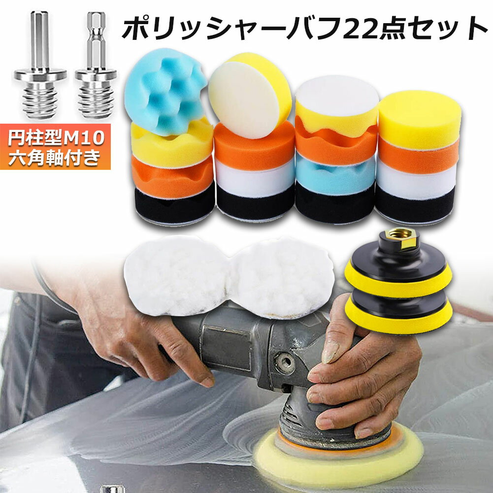 ポリッシャー バフ 80mm 22点セット 六角軸付き すぐ使える 仕上げ 電気ドリル インパクトドライバー用 洗車 車磨き スポンジ 研磨艶出し 塗装仕上げ 水垢取りに