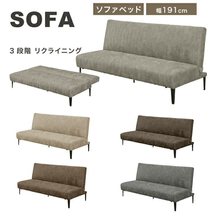■ 送料無料にて配達 ■ ■但し、北海道・東北・沖縄・離島を除きます。 北海道・東北・沖縄・離島の方は"■送料について(一部地域は別途送料有り)"プルダウンメニューから対象地域をお選びください。※対象地域でお選びいただけなかった場合でも、送料を加算させていただきます。ご了承ください。 ■送料は自動計算ではございませんので、送料をご承諾されましたら、注文承諾メールにて合計金額をお知らせいたします。 ■商品説明(Description of item) シンプルでかっこよく3段階リクライニング可能なソファベッドです。 材質 表面材:ファブリック 座面:Sバネ・ウレタンフォーム・ウェービングベルト サイズ ソファベッド:幅191×奥80×高84(SH38)cm ベッド時:幅110×長さ191×高38 脚:20cm カラー ・グレー ・ダークグレー ・ベージュ ・ブラウン ・ダークブラウン 特徴 Sバネ 輸入品 ■画像のカラーについてお持ちのパソコンによって商品の色が実際の商品と異なって見えてしまう場合がございます。■納期表記について当店商品はメーカー取扱商品も販売中の為、稀に在庫切れの場合もございます。■商品配送について配達はすべて玄関渡しとなります。大型商品やエレベーターの無い2F以上のお客様は玄関まで運ぶのをお手伝いをお願いしております。■大型商品のお届け日指定について大型商品は商品出荷からお届けまでに約7〜10日間程お時間を要します。お届け日指定があるお客様は、お時間に余裕をもってご注文くださいますようお願いいたします。沖縄・離島・東北・北海道・郡部等は更にお時間を頂く場合がございます。■大型商品のお届け時間について大型商品の配送は大型専門の運送会社を使用しますので、お届けは18時までのお受け取りに限ります。日付指定をされる際には、日中お受け取りできる日程をご指定ください。■お客様都合による出荷後のキャンセルや転送について家に入らない、カラーや商品を間違えた等のお客様都合のキャンセルの場合は往復分の送料・各手数料・商品代3割をご負担頂きます。住所の間違いによる転送についても転送料をご負担頂きます。■商品保証について不良や破損等が発生した場合お届け日より3ヶ月間保証いたします。保証対象は当店基準により判断させていただきますので、ご要望にお応えいたしかねる場合もございます。