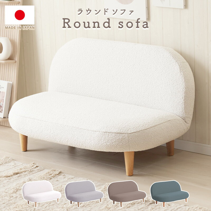【商品名】 ラウンドソファ -ブークレ生地- 【サイズ】(約)幅1080×奥行き650×高さ470(mm) ※高さは脚を含みません。 ※フルフラット時の奥行き:950mm 【製品重量】約10.65kg 【生地】ポリエステル100% 【リクライニング】背面14段ギア 【生産国】日本製 【送料無料】 沖縄・離島は配送を行っておりません。ご注文いただいた場合、勝手ながらキャンセルさせていただきます。 ※製造時に生じる若干の個体差や測定方法により、表記と多少異なる場合がございます。 ※脚は取り付けると奥に入り込み、高さが約15mm程低くなります。