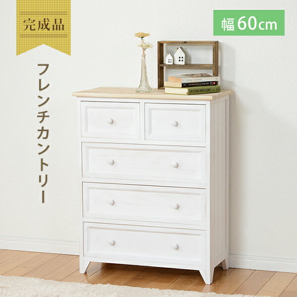 ご購入前に必ずにて商品の詳細をご確認下さい。また、商品に関して何かご不明な点は下記までお問い合せ下さい。萩原株式会社 スリーアイ本部086-523-4560※メーカーのサポート体制は予告無く変更・終了する場合がございます。※当商品は代金引換をご利用頂く事が出来ません。買い物かごのお支払方法にて代金引換をお選び頂かない様お願い申し上げます。 シャビーホワイトの本体にアンティーク調ナチュラルな天板が映えるシンプルワイドチェスト■上段には幅24cmの引出しが2杯、下段には幅51cmの引出しが3杯、合計5杯の引出し付き ■2種類の引き出しがお片付けをサポート。どちらも深さが13cmあるので、見た目以上に収納力◎ ■アンティーク加工を施したナチュラル天板 ■コロンと可愛い取っ手 ■お洒落なサイドライン ■脚はスッキリと斜めカット ■木目を生かしたアンティーク加工 アンティーク風塗装を表現するため 塗装の濃淡・かすれのある塗装を行っております。 職人が一品一品手作業で行うため 塗装には個体差があります。 また表面を研磨する際の白い粉が残る場合があります その場合、固く絞った濡れタオルなどで拭き取ってからご使用下さい ◇サイズ:(約)幅60×奥行31×高さ76cm ◇主材:桐材 ◇生産地:中国製
