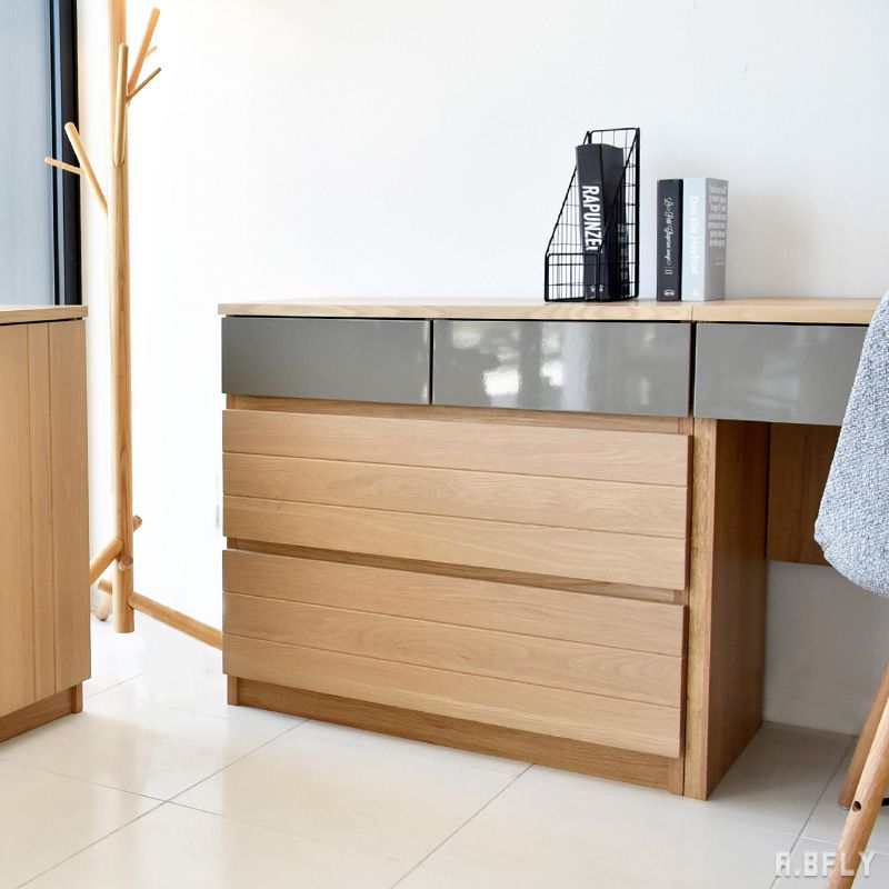 ナチュラルな木目と艶のあるグレー色がお部屋を優しい空間にしてくれます。 一人暮らしの買い足しにちょうど良いサイズのサイドチェストです。 オーク無垢材を贅沢に使った前板と引手の見えないシンプルなデザインが魅力です。 素材 天板:強化紙化粧繊維板 前板:オーク無垢材(オイル塗装) MDF(エナメル塗装) 本体:プリント紙化粧繊維板 サイズ 本体: W800×D450×H750(mm) サイズ(内寸) 小引出 収納有効内寸 : W305×D325×H85(mm) 大引出上 収納有効内寸: W705×D325×H165(mm) 大引出下 収納有効内寸: W705×D325×H165(mm) 耐荷重 天板:10kg 小引出:5kg 大引出:10kg 生産 日本 備考 仕様:完成品 注意事項 ※撮影及び表示画面の関係で、実際の色と異なって見える場合がございます。 保証期間について 保証期間は、商品到着後1年間となっております。構造等の不具合に限り、1年間は保証の対象となります。 ※保証書は付属していない商品もございますので、不具合等が見つかった場合は当ショップまでお問い合わせください。 シリーズラインナップ 120スライドカウンター 120ドアカウンター 120ドロワーカウンター 80キッチンボード 80チェスト 80デスク サイドボード
