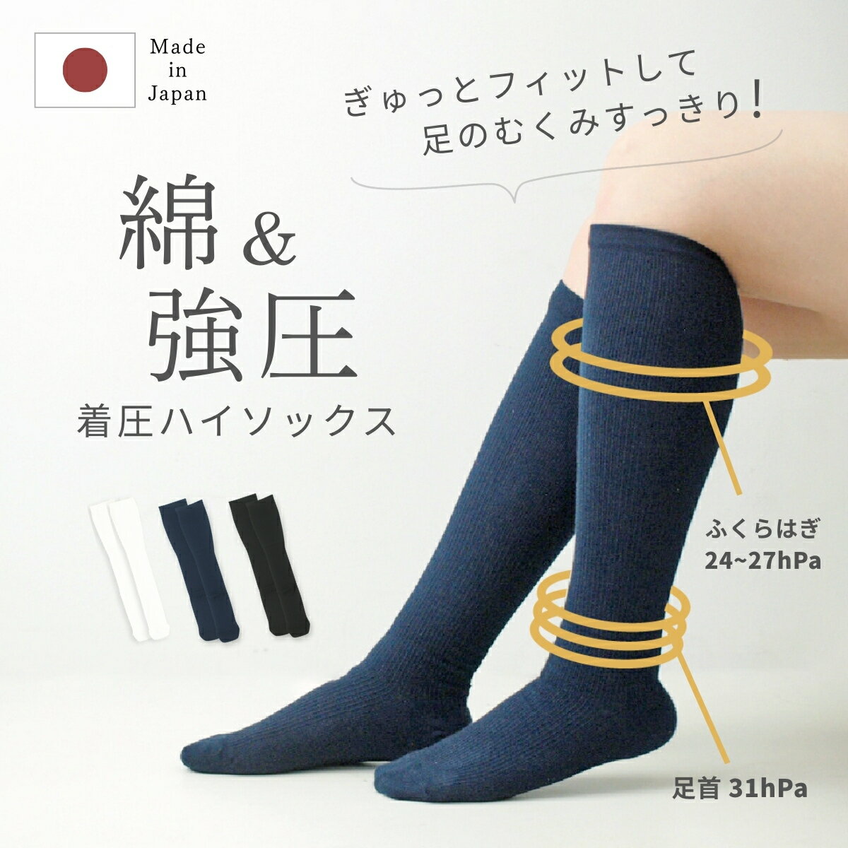 キーワード:トラベル 旅行 ブラック 黒 >> ページトップ商品詳細 ■サイズ: 23-25cm■素材: 綿、ナイロン、ポリウレタン■生産国: 日本製■内容量: 1足入り■キツく感じることもありますが、高い伸縮性でふくらはぎをサポートするための仕様です。■洗濯時は洗濯ネットをご使用ください。■「サイズ表記」が脚のすね側にくるようご着用ください。■次のような場合は着用をお止めください。・着用部(足首からふくらはぎにかけて)に傷、炎症、ケガがある。・手足になんらかの障害(神経障害、しびれなど)がある。■次のような方は着用について医師にご相談ください。・高血圧、心臓病、糖尿病などによる血行障害のある方。・着用中、または着用後に皮膚の異常(かぶれなど)、しびれ、痛みなどがみられた方。・高齢者、妊娠中の方。■着用中の次のような使用、動作はお止めください。・長時間の正座などの膝を曲げて脚を圧迫する姿勢。・本製品、または他の着圧ソックスなどの締め付けるタイプの商品と重ね履き。・履き口や裾などを折り返しての着用。■その他注意事項をお読みになってご使用ください。