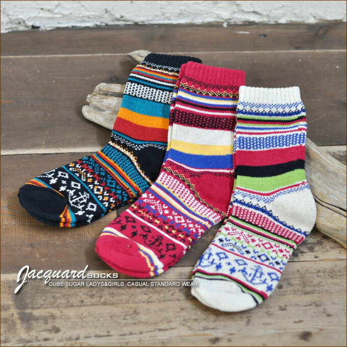 カラフルなアンカー、イカリマークの入ったジャガード柄がカワイイ♪靴下です。 ギフトにもオススメ!雰囲気たっぷりです。 大活躍間違いナシのオススメ! か・な・りキュートですヨ〜♪ ※レディースMサイズ ※素材:綿85%・ポリエステル12%・ポリウレタン3% ※こちらの商品は後加工(製品洗い、後染めなど)がかかっておりますので、印象やお色等多少違う場合がございます。ご覧の環境等によっても多少色目が異なる場合がございますので予めご了承下さい。 ※1つ1つ多少形が異なります。ロット等により写真とお色が多少異なる場合がございます。 メール便は全国一律350円です。 コチラの「ジャガードソックス♪」のみでご注文の場合、3点まではメール便発送可能です。ご注文の際に備考欄へ【メール便発送希望】と必ずお書き添え下さい。 (ご記載のない場合は通常通り宅配便での発送とさせていただきます。) メール便ご利用の際は必ずコチラをお読み下さい ※こちらの商品は再入荷はございません。 【CUBE SUGAR】キューブシュガーアンカー★ジャガード柄ソックス♪ ※カラーは写真左から 「ネイビー」「ピンク」「ナチュラル」です。カラフルでカワイイ♪ 再入荷ナシ!早い者勝ちッ 【CUBE SUGAR】キューブシュガー ハート★ジャガード柄ソックス♪ 【CUBE SUGAR】キューブシュガーから キュートな靴下が登場〜♪ とってもオススメ! カラフルなアンカー、イカリマークの入ったジャガード柄がカワイイ♪ とてもキュートです♪ カラーは全3色。 どの色もカラフルでオシャレ♪ ネイティブな雰囲気たっぷり! 大活躍間違いナシですよネ。 とってもオススメです♪