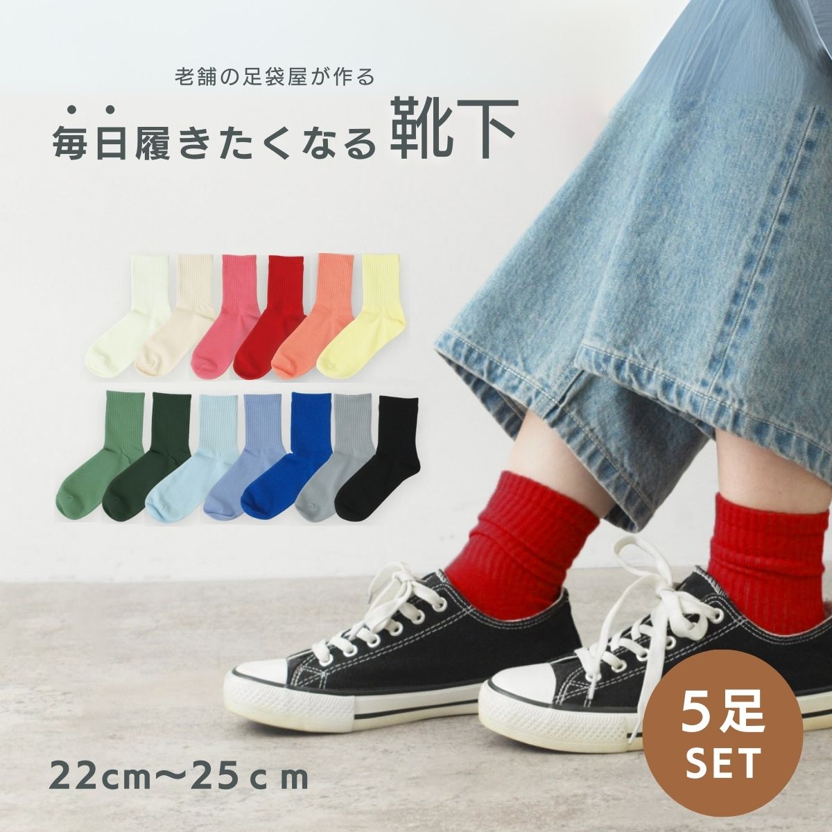 商品詳細 ブランド T-LAB 対象 レディース 素材 コットン、ポリエステル、ポリウレタン カラー ※5足セットでの販売になります。 1ホワイトベースセット ホワイトサックス、ホワイトグリーン、ホワイトレッド、ホワイト、ブラック各1足 2ブラックベースセット ライトブルー、グリーン、グレー、ホワイト、ブラック各1足 3ホワイトセット ホワイト5足 4ブラックセット ブラック5足 5ミックスセット ホワイト2足、ブラック3足 サイズ 23~25cm こちらのキーワードで 商品を探されている方に おすすめ 送料無料 靴下 レディース 表糸 綿100% 綿100 薄手 クルー丈 ラインソックス ソックス キレイ キレイめ カジュアル 無地 蒸れない カラフル シンプル 23〜25cm 春夏秋 組み合わせ自由 おしゃれ くつした 女性用 四季対応 脱げにくい 柔らかい 人気 通勤 通学 洗える 綿素材 日常使い 22cm 23cm 24cm 25cm 快適 ベーシック デイリー使い ナチュラル 大人カジュアル プレゼント ギフト 誕生日 母の日 色が選べる やさしい肌ざわり 足元コーデ 日常スタイル シーズンレス オフィスカジュアル 足もと快適 コーデの差し色 プチプラファッション トレンドカラー 合わせやすい 肌にやさしい 足元のアクセント おしゃれ女子愛用 朝の時短 かわいい足元 モノトーン 上品 大人かわいい【レビュープレゼントキャンペーンご注意事項】 ・同一商品を複数ご購入頂いた場合でも特典は1つとさせていただきます。 ・レビューの投稿は商品到着後3週間以内にお願いします。 ・レビュー特典は楽天にご登録いただいているメールアドレスへの配信となります。(再送はできかねます。予め、登録のメールアドレスをお確かめくださいませ。) ・レビューキャンペーンは告知なく変更または終了することがございます。 【玉井商店について】 明治22年に創業した玉井商店は、足袋・靴下を製造販売しております。 日本伝統文化である足袋を職人の手で一つひとつ丁寧に作り上げ一筋に130年の歴史を築いて参りました。 上質な履き心地はもちろん、ウール・シルク・綿などの天然素材に特化した商品も数多く取り揃えてますので、是非一度ご覧ください。 ▲発送に関しての注意事項▲ この商品はクリックポストでの発送になります。 お届けは、翌日から2?3日程度が目安になります。 天候や交通状況によりますが、およそ通常の宅急便+1?2日程度でのお届けになります。 (北海道・沖縄・離島などは、さらにお日にちがかかる場合があります。) 配達日時指定はご利用いただけません。 基本的には直接手渡しいたしませんので、日時指定はご利用いただけません。 こちらの商品はポストに投函いたします。 ポスト(郵便受箱)に入らない場合は、配達員が直接お伺いいたします。 ご不在の場合は不在配達通知書が投函された上で配達を行う郵便局へ持ち戻ります。 (保管期限以内にご連絡の上、お荷物をお受け取りください) 複数商品のお買い上げでクリックポスト対応サイズよりオーバーした場合は 宅急便に変更させていただく場合がございます。 【検索用ワード】 送料無料 靴下 レディース 表糸 綿100% 綿100 薄手 クルー丈 ソックス キレイ キレイめ 無地 蒸れない カラフル シンプル 23〜25cm 春夏秋 組み合わせ自由 おしゃれ くつした 女性用 四季対応 脱げにくい 柔らかい 人気 通勤 通学 洗える 綿素材 日常使い 22cm 23cm 24cm 25cm 快適 ベーシック デイリー使い ナチュラル 大人カジュアル プレゼント ギフト 誕生日 母の日 色が選べる やさしい肌ざわり 足元コーデ 日常スタイル シーズンレス オフィスカジュアル 足もと快適 コーデの差し色 プチプラファッション トレンドカラー 合わせやすい 肌にやさしい 足元のアクセント おしゃれ女子愛用 朝の時短 かわいい足元 モノトーン 上品 大人かわいい ラインソックス