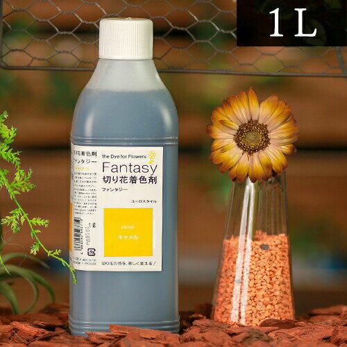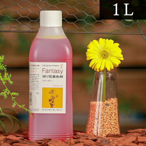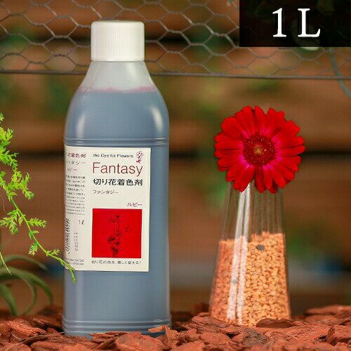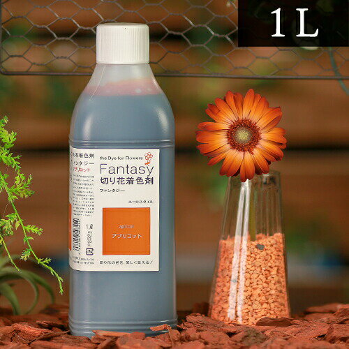 【サイズ】1L吸い上げタイプの切り花着色剤です。切り花に原液を吸わせることでお好きな色に染めることができます。異なる色同士を混ぜ、お好きな色を作ることもできます。■使用方法(1)準備:新鮮な切り花を切り戻します。水揚げされた花は(使用時点で十分に水を水あげてしまっているお花)1-2時間水から上げておいてから使うと吸い上げが良いです。(2)染色:ファンタジーの原液を吸わせます。1-3時間置き、花びらに色が見え始めたら終了です。(3)水洗い:これ以降の水の吸い上げのために、茎の先端についているファンタジーを洗い流してください。切り落としてしまうことも有効です。(4)仕上げ:水又は切り花鮮度保持剤の入ったお水で鑑賞いただけます。ファンタジーは絵の具のように他の色と混ぜてオリジナルの色を作ってお楽しみいただくことも可能です。色がちょっとビビット過ぎるという場合には、うすめ液をご利用ください。■注意事項(必ずご一読ください)お使いいただく植物の品種またはその個体差によっても発色が異なる場合があります。植物によっては染料に使われている複数の色素の内、特定の色のみ強く吸い上げ発色するケースもあり、一部カスミソウでオレンジのファンタジーを使ったのに黄色にしかならなかったというご報告がありました。その時々により厳密な理由は明確ではありませんが、植物側の天然素材故の性質・個体差として色名通りに発色しない場合がございますことをご容赦願います。確実に同じ発色をご希望される場合には、お花専用のカラースプレーもご検討いただければ幸いです。尚、オレンジを濃い色に発色させたい場合にはオレンジの中にレッド又はアプリコットを混ぜて頂く方法も効果的です。こちらは空輸不可商品となります。沖縄・離島へは船便配送となりますので、お届け希望日+10日〜2週間後の納品となります。【はなどんやお取り扱い商品について】■はなどんや掲載商品には、在庫品とメーカーお取寄商品がございます。掲載納期をご参考にされて下さい。即日発送の納期が記載されている商品でも、当店在庫が欠品となった場合には、お取り寄せにてご手配を進めさせていただきます。※コンビニ支払い・銀行振込等、前払い決済でのご注文については即日発送の対象外となります。■他店舗でも販売をしているため、また、メーカーの実在庫欠品等によりご注文後にご用意ができなくなる場合がございます。その場合にはメールにてご案内をさせて頂きます。■分納は承っておりません。一番遅い納期の商品に合わせて発送となります。/【VAR:23004】4984052701312/20180806new花資材・フローリスト道具 生け花・生花 道具 切花着色剤/【パレス化学】