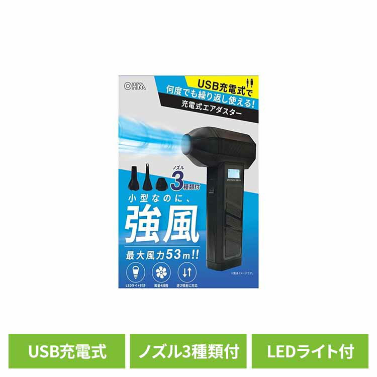 ● 充電式エアダスターにクリーナー機能を追加● 吹くだけででなく、吸い込んできれいに清掃● USB充電式で繰り返し使えて経済的● 可燃性ガス不使用。場所を選ばず使用できて環境にもやさしい。● 3段階+ターボモードと3種のノズルで用途に合わせた風量調節が可能。● パソコンやデスク周りのホコリ飛ばしのほか、網戸やサッシレールの隙間掃除、 エアコンフィルターの清掃、衣類についた花粉飛ばしなど多用途で使えます。● LEDライト付きで暗い場所でも使用できます。●商品サイズ(cm)幅約6.5×奥行約3.7×高さ約14.2●商品重量約0.23kg■風量調節:4段階■連続使用時間:約40分(風量1の場合)■バッテリー:リチウムイオン電池■バッテリー容量:5000mAh(2500mAhx2)■充電時間:約2.5時間■本体寸法(WxHxD):約65x142x37mm(ノズルを除く)■本体質量:約230g(ノズルを除く)■モーター回転数:最大130、000回転■付属品:ノズル3種、充電用USBケーブル※※USB電源アダプター別売この商品で採用しているバッテリーは400Wh/L以下のため、電気用品安全法の対象外のリチウムイオンバッテリーとなります。(検索用:エアダスター 充電式 クリーナー パソコン周り 掃除 ホコリ飛ばし 清掃 隙間掃除 空気入れ 花粉飛ばし 4971275172500)最強翌日配送対象商品に関するご案内 最強翌日配送対象商品・対象地域に該当する場合は最強翌日配送マークがご注文カゴ近くに表示されます。 最強翌日配送可能なお支払方法は【クレジットカード、代金引換、全額ポイント支払い】のみとなります。 下記の場合は最強翌日配送対象外となります。 ・15点以上ご購入いただいた場合 ・時間指定がある場合 ・ご注文時備考欄にご記入がある場合 ・決済処理にお時間を頂戴する場合 ・郵便番号や住所に誤りがある場合 ・最強翌日配送対象外の商品とご一緒にご注文いただいた場合 ・お届け先住所文字数が40文字以上の場合