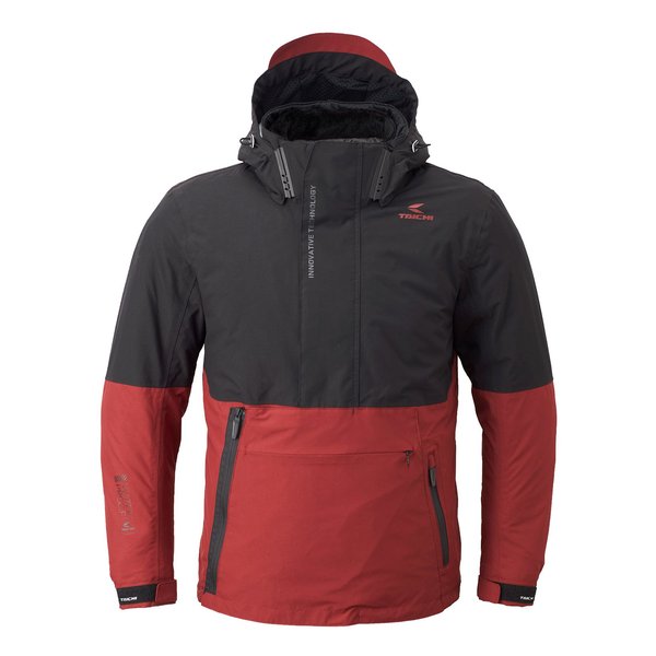 ●防水性やCEプロテクターなどのライディングに必要な機能を兼ね備えた、アノラックスタイルのウインターパーカ。 急な雨に見舞われた際にも安心してご使用いただけます。●ハーフジップのフロントのような見た目ながらも、フラップ形状のカンガルーポケットを開くことでフロントファスナーが露出し、着脱しやすい仕様になっています。●プロテクター内蔵のアウターと保温力をもつインナージャケットの二重構造で、気温やシーンに合わせてそれぞれ単体や組み合わせた着用が可能です。●胸部プロテクター(別売り)を装着するためのアタッチメントを装備。 スナップボタンで胸部プロテクターの着脱が可能です。(CPS対応)●標準装備の肩・肘・背中の各プロテクターはCEレベル2プロテクター(別売り)でアップグレード可能。■フロントフルジップオープン可能■CEレベル1ソフトタイププロテクター(肩・肘)■単体着用可能インナージャケット■材質 アウター:ナイロン 100% インナー:ナイロン 100%■カラー:BLACK/BURGUNDY■サイズ:XL