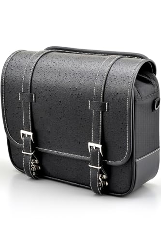 バイク用サイドバッグ・プレーン 12L(防水) 97092・・Color:プレーンPatternName:12L(防水)・【用途】バイク用防水サドルバッグ・【材質】合皮・【仕様1】容量12L、最大積載重量5kg・【仕様2】サイズ:縦270x横360x幅120mm・【商品構成】ボトルホルダー、合皮固定ベルト×2、ナイロン固定ベルト×2、緩み止めアジャスター×2、ひも×2商品紹介 無骨な外観で細部までこだわった「究極のシンプル イズ ベスト」 A4サイズが余裕で入る、使い勝手抜群の王道サイズ 【デザイン】 プレーン 【カラー】 ブラック 【容量】 12L 【素材/材質】 バッグ本体:合成皮革×1680Dナイロン 防水インナー:210DナイロンTPU 【サイズ】 縦270×横360×厚み120mm 【収納例】 レインウエア、工具、A4サイズマップ、パンク修理キット、グローブ、500mlペットボトル 【特長】 防水インナー機構 インナー防水の採用で、見た目を損なわず高い防水効果を発揮。 突然の雨でも簡単に防水になり、晴天時でも普通のアメリカンバッグと同じようにストレスなく物の出し入れが可能。 バッグサポート差し込み機構 背面部はサドルバッグサポートに差し込むだけで走行時の振れを抑制。 背面下部にも固定用のDカン&ひもが付属。 差込み部のプレートには穴が設けられている為、結束バンドやひもを用意すればさらにしっかりと固定が可能。 汎用性が高く、幅広い車種に装着が可能。 2種類の固定ベルトが付属 合皮固定ベルトは強度と美しさを両立。 ナイロンベルトは薄くて強度が高い為、純正シートレールとフェンダーの隙間に通しやすい設計。 赤い裏地の採用 ライダースジャケットをイメージした裏地は、明るくて荷物が見やすい。 ウィンカーとの接触を防ぐコンパクト設計 ベルト固定部は取り付けやすさやバッグのスタイルを崩さないサイズに設計。 ワンタッチ金具で簡単開閉 スタイル重視のワンタッチ金具の採用。 YKK製ダブルファスナーの採用 一気に開閉が可能で、盗難抑止のダイヤルロック(別売)が装着可能。 ボトルホルダー標準装備 内側に保冷保温素材を採用している贅沢仕様。脱落抑止のカラビナはバッグから外して持ち歩きにも便利。 ベルト固定部に角カンの採用 力の掛かるベルト固定部には角カンと呼ばれる樹脂パーツを採用して強度をアップ。 芯材の採用 バッグの骨となる芯材(1~2mm厚)を適材適所で使い分け。 生地選び 本革の風合いに近くメンテナンスのしやすい合成皮革と強度の高いナイロン生地を採用。 ステッチは高級感のあるシルバーグレー。 コバ処理 コバ部分は丁寧かつなめらかなコーティング処理。 使用上の注意 バッグの装着にはサドルバックサポートとの同時装着が必要。