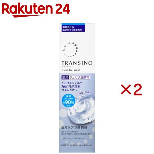 お店TOP>化粧品>クレンジング・洗顔>クレンジング>クレンジングジェル>トランシーノ 薬用クリアジェルウォッシュ (110g×2セット)商品区分:医薬部外品【トランシーノ 薬用クリアジェルウォッシュの商品詳細】●トランシーノ「洗うケア」共通の、肌荒れ防止有効成分※1、くすみ感ケア成分(ビタミンC※2・アケビアエキス※3)、うるおい成分※4を配合。●「とろける密着ジェル」と「Wの毛穴ケア成分(角栓・皮脂クリア成分※5、毛穴・肌汚れ吸着成分※6)」が、頑固な角栓・毛穴汚れにアプローチします。●泡立て不要。さらに軽いメイクも落とせる2in1洗顔料で、お手軽に透明感ケアが叶います。(濡れた手・顔にも使えます。)●保湿ジェル成分約90%配合。うるおい仕立てで洗いあがりつるすべな肌へ。●まつ毛エクステンション対応テスト済み。(一般的なグルーを想定したテストを実施済み。すべてのまつ毛エクステンションに使用できるわけではありません。)※1 グリチルリチン酸2K※2 アスコルビン酸2-グルコシド(保湿)※3 モクツウ抽出液(保湿)※4 トレハロース、ポリメタクリロイルオキシエチルホスホリルコリン液※5 イソプレングルコール※6 ケイ酸Al・Mg【販売名】DSジェルウォッシュ【使用方法】泡立たないタイプの洗顔料です。★ご使用法適量を乾いた手に取り(濡れた手・顔でも使えます)、手のひらで顔全体にやさしくなじませ、汚れを浮き上がらせます。その後水又はぬるま湯で10〜15回程度を目安に、十分に洗い流して下さい。※特に毛穴汚れなどが気になる部分には、くるくると円を描くようにしっかりとなじませてから洗い流して下さい。※軽いメイクも落とせます。★ご使用量の目安大きめのさくらんぼ粒大【成分】有効成分:グリチルリチン酸2Kその他の成分:トレハロース、ポリメタクリロイルオキシエチルホスホリルコリン液、アスコルビン酸2-グルコシド、モクツウ抽出液、イソプレングリコール、ケイ酸Al・Mg、オレンジ花水、水、DPG、イソステアリン酸POEグリセリル、POE(カプリル・カプリン酸)グリセリル、グリセリン、ジグリセリン、カルボキシビニルポリマー、BG、ヒドロキシプロピルメチルセルロース、ビタミンE、水酸化K、ジエチレントリアミン5酢酸5Na液、フェノキシエタノール、パラベン【注意事項】・肌に異常が生じていないかよく注意してご使用下さい。使用中に、赤み、はれ、かゆみ、刺激、色抜け(白斑等)や黒ずみ等の異常があらわれた場合、使用した肌に直射日光があたって同様の異常があらわれた場合は、使用を中止し、皮ふ科医にご相談下さい。使用を続けると症状を悪化させることがあります。・傷やはれもの、湿疹等、異常のある部位には使用しないで下さい。・目に入らないようご注意下さい。入ったときはこすらず直ちに洗い流して下さい。異物感が残る場合は眼科医にご相談下さい。・乳幼児の手の届かない所に保管して下さい。・極端に高温又は低温の所、直射日光の当たる所には保管しないで下さい。・使用後は必ずキャップをしめて下さい。・開封後は早めにご使用下さい。・中身の黒い点は配合成分特有のものです。品質には問題ありません。【原産国】日本【ブランド】トランシーノ【発売元、製造元、輸入元又は販売元】第一三共ヘルスケア※説明文は単品の内容です。リニューアルに伴い、パッケージ・内容等予告なく変更する場合がございます。予めご了承ください。・単品JAN:4987107674401第一三共ヘルスケア東京都中央区日本橋3-14-100120-337-336広告文責:楽天グループ株式会社電話:050-5577-5043[クレンジング/ブランド:トランシーノ/]