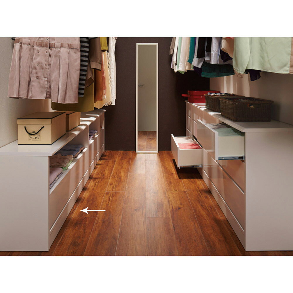 世界でただひとつ、ここはあなただけの衣装部屋。ウォークインクローゼットのハンガー下の空間を無駄なく有効活用。見た目に美しく機能的な収納システム。幅60・100の2サイズと幅29〜59cmオーダータイプを組み合わせれば、まるで作り付け家具のように収納スペースを創ることができるローチェスト。収納空間のクローゼット、ウォークインクローゼットを有効に使えていますか?備え付けのハンガーにたくさんの洋服がかかっていると思いますが、その下の空間はどうでしょうか。無造作に箱が積み重なっていたり、バッグが散らばっていたり、無駄に空間が空いていたりしていませんか?この商品は、そんな問題を解消できて、すっきり片付いた美しい収納空間を実現するための衣類収納家具です。このシリーズには、幅サイズ:29〜59cmサイズオーダー・60cm・100cm の3サイズ奥行:35cm・45cm・56cm の3サイズ高さ:58cm・72cm型:オープン収納&引き出しタイプ・フルスライドチェストタイプ以上36種類をご用意しております。さらに色は、ホワイト、ライトナチュラル、ダークブラウンの3色ご用意。設置スペースのサイズ、床や扉や壁の色に合わせて自由にお選びいただけます。ハンガー下の空間にぴったり収まった棚&引き出し収納を創り、誰でも整理しやすく、美しさを持続できるクローゼット収納を手に入れましょう。こちらは、幅100cm高さ58cm・72cm フルスライドチェストタイプです。・高さ58cmは引き出し収納2段(上は小引き出し、下は大引き出し)、高さ72cmは引き出し収納3段(最上段は小引き出し、下2段は大引き出し)という構造です。Tシャツやトレーナー、セーターはもちろんダウンジャケット、コートなどのかさばる冬物の収納にもオススメです。・引き出しはストッパー付きフルスライドレール仕様で全開でます。収納物の出し入れがしやすいのが特長です。・奥行サイズを35・45・46cmから設置場所に合わせてお選びください。・同シリーズの幅29〜59cmオーダータイプ、幅60cmタイプと組み合わせるとハンガー下スペースにぴったり設置できます。ページ下部に画像の説明がございます。一部別売りの商品もございますので、説明文ご確認のうえご注文ください。>画像の説明はこちら<仕様・サイズ[サイズ]【幅100奥行35高さ58cm】重さ30kg【幅100奥行35高さ72cm】重さ38kg【幅100奥行45高さ58cm】重さ35kg【幅100奥行45高さ72cm】重さ47kg【幅100奥行56高さ58cm】重さ40kg【幅100奥行56高さ72cm】重さ55kg[すべてのサイズに共通]■色:(ア)ホワイト、(イ)ライトナチュラル、(ウ)ダークブラウン■前面・天板…化粧板((ア)天板=ピアフォルテ、(ア)前面・(イ)(ウ)天板・前面=熱硬化性樹脂成形シート張り)側面…化粧合板■幅木対応(7.5×1.5cm)■日本製【送料マーク:E】 梱包サイズが大きいため、お部屋まで搬入できない場合があります。ご注文の際は、必ず事前に梱包サイズと設置場所までの搬入導線(通路の幅・高さ等)をご確認ください。>詳細な説明はこちら<この商品の配送料は7000円(税込)です。※北海道・九州・沖縄は地域特別配送料がかかります。この商品は下記のサービスが選択できます。※組み立て・開梱サービスは日時指定ができません。お届け前に配送所より配達日時のご連絡をさせていただきます。※別途配送料金がかかります。有料開梱サービスについて 画像の説明引き出しは全段、奥までしっかり開けられて、抜け落ちる心配もないストッパー付きフルスライドレール仕様です。引き出しは全段、奥までしっかり開けられて、抜け落ちる心配もないストッパー付きフルスライドレール仕様です。幅木があっても壁にぴったり付けて設置可能。【After】【Before】