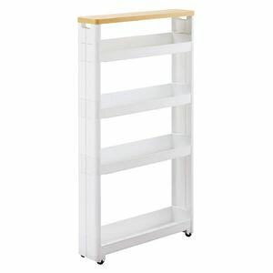 サイズ約 幅12.5×奥行55×高さ85.3(cm)材質本体/ポリプロピレン天板/プリント化粧パーチクルボード備考 【カラー】ホワイト 【生産国】日本 【備考】組立式【耐荷重】天板/3kg以下、上段/4kg以下、中段/6kg以下、下段/10kg以下総合計/23kg以下※変形や転倒の危険がありますので、一部に荷重がかかりすぎないよう、平均して乗せるようにしてください。※熱による変形の恐れがありますので、ストーブ等の近くでは使用しないでください。キッチン収納スマートワゴンFit 関連商品幅10.5cm奥行45cm3段ホワイトF2570幅10.5cm奥行き45cm4段ホワイトF2571幅10.5cm奥行き55cm3段ホワイトF2572幅10.5cm奥行き55cm4段ホワイトF2573幅12.5cm奥行き45cm4段ホワイトF2540幅12.5cm奥行き45cm5段ホワイトF2541幅12.5cm奥行き55cm4段ホワイトF2542幅12.5cm奥行き555段ホワイトF2543幅12.5cm奥行き45cm3段ホワイトF2544幅12.5cm奥行き45cm4段ホワイトF2545幅12.5cm奥行き55cm3段ホワイトF2546幅12.5cm奥行き55cm4段ホワイトF2547幅12.5cm奥行き55cmランドリー3段ホワイトF2548幅12.5cm奥行き45cmサニタリー3段ホワイトF2549W2503段F2593W2504段F2594W3503段F2590W3504段F2591キッチン収納 スマートワゴン Fit 幅12.5cm 奥行き55cm 4段 ホワイト F2542 どこにでもある、わずかなデッドスペースをすっきり&たっぷり小物収納にできるスリムワゴンです。ご自宅の家具に合わせて、幅や奥行き、高さなどサイズが選べます。幅わずか12.5cm!とてもスリムな収納ワゴンです。奥行は55cmで、冷蔵庫やシンク横などに最適です。4段ラックの上段は木製天板タイプとなっており、木のぬくもりを感じられるフラットで使いやすい、スタイリッシュなデザインです。サイドオープンタイプなので、左右どちら側からでも取り出すことができます。壁面にぴったりくっつけて使用すれば、キッチン以外でもリビングなどでオープンラックとして使用できます。側板が目隠しとなり、たっぷり収納してもスッキリ見えます。まっすぐ動くコロ付きなので、引き出しの感覚で出し入れできます。差し込み式の簡単組立です。【注意事項】こちらのページの商品は、メーカー直送の商品となります。お届け先が、北海道、沖縄、離島になる場合、別途送料が必要になる場合がございます。