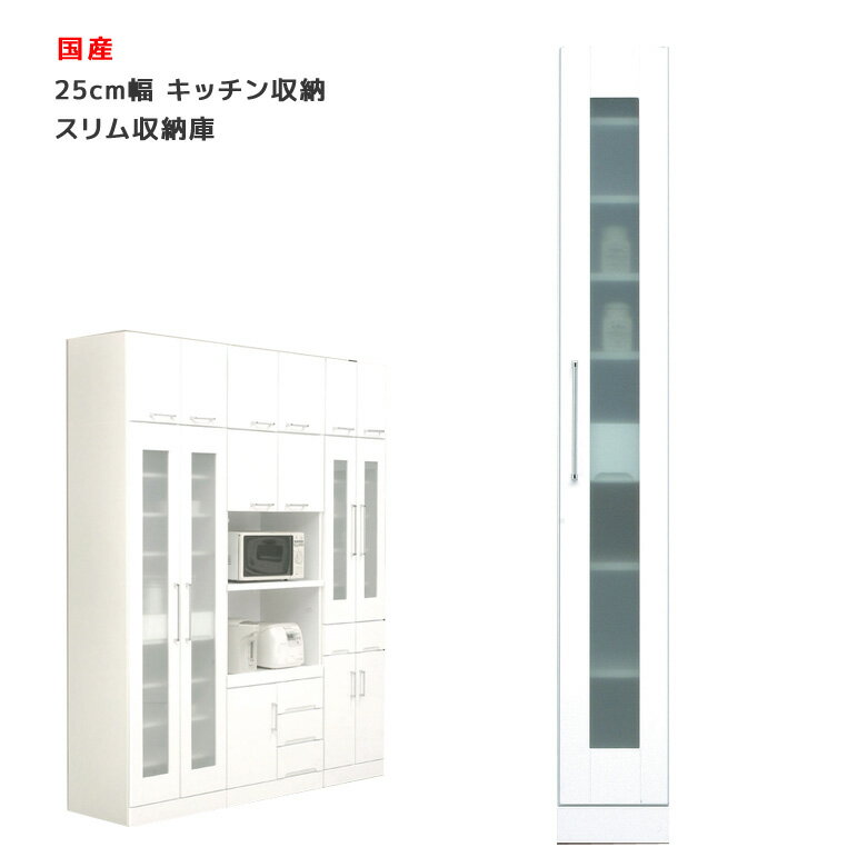 サイズ幅25cm x 奥行き44.5cm x 高さ180cm 素材MDF カラーホワイト 仕様ネジダボ/エナメル塗装磨きツヤ100%/飛散防止効果フィルム加工ガラス使用/上扉耐震ラッチ国産 備考*こちらの商品はメーカーからの取り寄せとなります。在庫確認後改めて納期をお知らせいたしますので、予めご了承ください。お急ぎの方、また購入をご検討の方は事前に在庫をお問い合わせください。送料送料無料(一部地域を除く)※北海道・東北別途送料がかかります。※沖縄・離島送料は、別途お見積りとなります。また、大型商品は配送の都合上 ご注文承れない場合がございます。予めご了承下さい。別途送料につきましてご質問等がございましたら、お気軽にお問い合わせ下さい。※配送料について※ 一部配送地域により中継料などが発生し、別途追加送料をお願いする場合がございます。 何卒ご了承ください。 メーカー希望小売価格はメーカーカタログに基づいて掲載していますすき間収納 スリム収納庫 幅25 キッチンボード ダイニングボード キャビネット スリム 収納 木製 白 ホワイト 隙間
