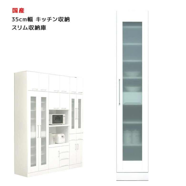 サイズ幅35cm x 奥行き44.5cm x 高さ180cm 素材MDF カラーホワイト 仕様ネジダボ/エナメル塗装磨きツヤ100%/飛散防止効果フィルム加工ガラス使用/上扉耐震ラッチ国産 備考*こちらの商品はメーカーからの取り寄せとなります。在庫確認後改めて納期をお知らせいたしますので、予めご了承ください。お急ぎの方、また購入をご検討の方は事前に在庫をお問い合わせください。送料送料無料(一部地域を除く)※北海道・東北別途送料がかかります。※沖縄・離島送料は、別途お見積りとなります。また、大型商品は配送の都合上 ご注文承れない場合がございます。予めご了承下さい。別途送料につきましてご質問等がございましたら、お気軽にお問い合わせ下さい。※配送料について※ 一部配送地域により中継料などが発生し、別途追加送料をお願いする場合がございます。 何卒ご了承ください。 メーカー希望小売価格はメーカーカタログに基づいて掲載していますすき間収納 スリム収納庫 幅35 キッチンボード ダイニングボード キャビネット スリム 収納 木製 白 ホワイト 隙間