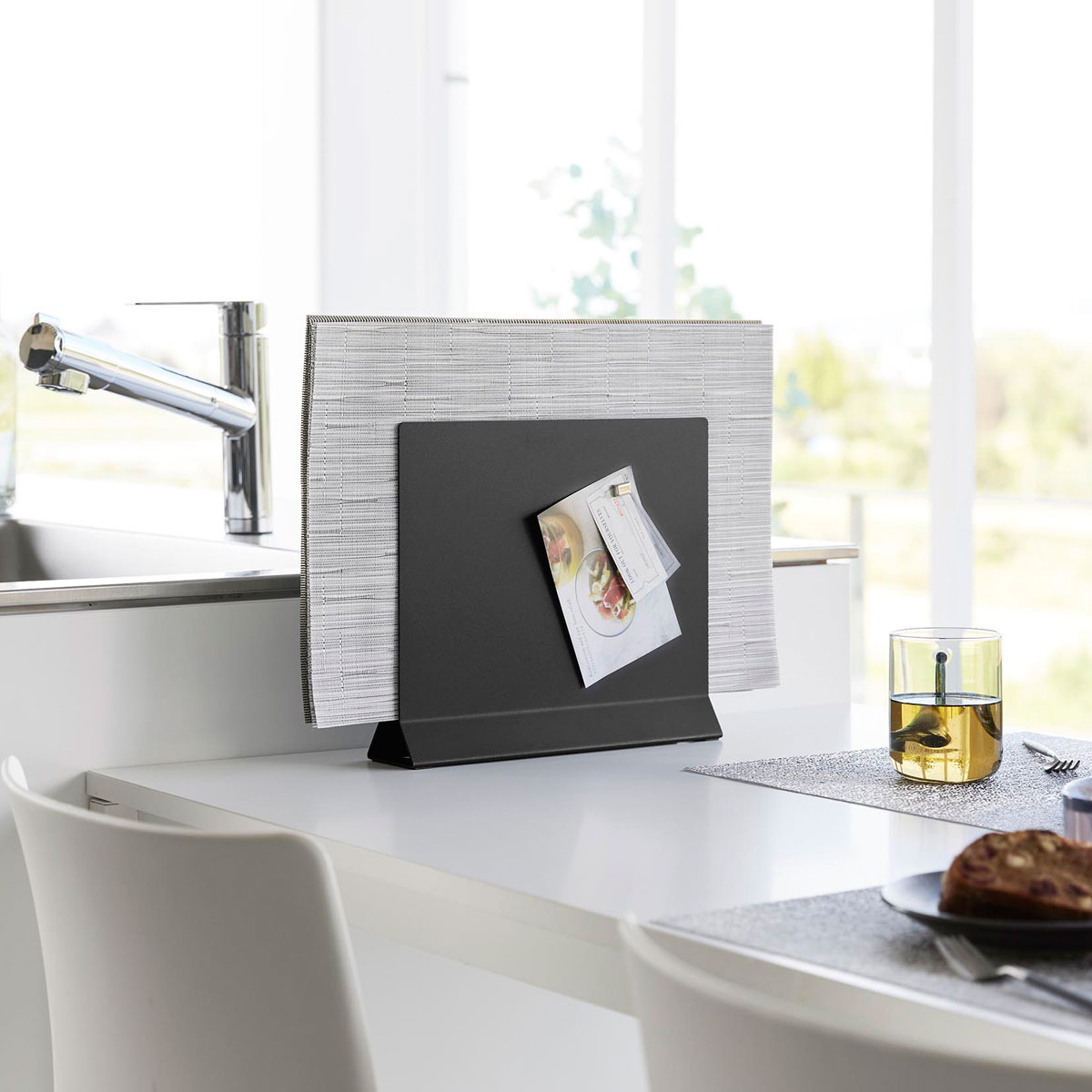 スチール製でマグネット小物も取り付け可! 置き場所に困るランチョンマットをスリムに浮かせて収納できるスタンド。浮かせて収納できるので、ほこりなどが付かず衛生的。ランチョンマット以外にもキッチントレーなどの収納にも便利です。長方形以外に丸形のランチョンマットにも対応しています。 円形のランチョンマットやトレーも対応! 幅が約6.5cmとスリムな設計なので電子レンジなどの横に置いても邪魔になりません。丈夫で重いスチール製なので、ティッシュケースやキッチンタイマーなどのマグネット小物をつけて使用できます。円形のランチョンマットやトレーなどの収納にも使えます。 商品の情報 ・ブランド:YAMAZAKI(山崎実業)/日本 ・ジャンル:ランチョンマットスタンド ・主な素材:スチール 粉体塗装(本体)/シリコーン(滑り止め) ・生産国:中国 ・サイズ:約W300xD65xH265mm ・重量:約2000g ・本体に設置できるマグネット製品:約500g ・対応サイズ:厚さ約2.4cmまでのランチョンマット、キッチントレー この商品の仲間たち 正規品 tower タワー ランチョンマットスタンド ホワイト 正規品 tower タワー ランチョンマットスタンド ブラック