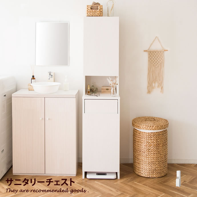 商品説明背の高いブラシも収まるラック温かみのある天然木とホワイトの組み合わせがナチュラルなテイストにピッタリな『Pola(ポーラ)』シリーズ。背の高いブラシが収納できるマルチスタイルラックのワイドタイプが登場しました。ごちゃつきがちな掃除道具や日用品などをおしゃれに収納し、見た目もすっきりさせることができます。お気に入りのディスプレイが楽しめる天板収納だけでなく、天板には観葉植物やディフューザーをおいてディスプレイをすることもできます。表面にはラッカー塗装をしているので、キズや水に強く安心して使っていただけます。置き場所自由自在なバスケット付きラタン風のバスケットが付属しているので、ハンカチや衛生用品等を収納して引き出しのようにさっと取り出すことができます。取り出して別々でも使用できます。場所を選ばないナチュラルデザインナチュラルなデザインなので、トイレだけでなく洗濯機横やリビング、ベッド横において小物収納やサイドチェストとしてもお使いいただけます。組み立て不要の完成品でお届けいたします組み立ていらずの完成品なので、お手元に届いてすぐに使っていただけます。引っ越しや新生活で時間のない忙しい方にもおすすめです。サイズ幅50.5cm×奥行21cm×高さ62.5cm材質【構造部材】天然木(桐) 【表面加工】ラッカー塗装脚部組立区分組立なしお届け2〜5日営業日以内の発送予定となります。午前・午後のお届け時間のご指定が可能です。 備考【梱包サイズ】56cm×27.5cm×70cm【商品重量】約4.7kg【耐荷重】全体:約20kg