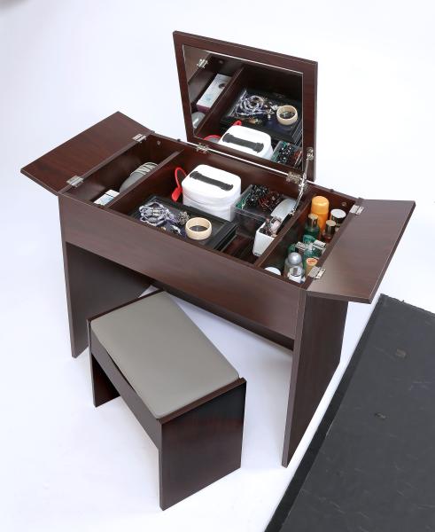 ■商品内容コンパクトサイズのドレッサーです。収納スペースもたっぷり確保されており、メイクなどに必要な道具をひとまとめにできます。蓋を開くと裏側にミラーが付いております。キャスター付きで移動もラクに行えます。■商品スペック【サイズ(mm)】幅450 × 奥行310 × 高さ530引出内寸(上段):380x155x115mm引出内寸(下段):380x235x115mm【重量】14kg【材質】プリント紙化粧繊維板、鏡【生産国】香港【注意事項】・直射日光の当たる場所、または熱、火は避けて下さい。・必ず本来の用途だけにご使用下さい。・加熱した鍋、湯沸かしなどを直接置かないで下さい。・商品を踏み台代わりにしたり、乗ったりしないで下さい。【特記事項】こちらは組み立て商品です。(キャスター、横揺れ防止、取っ手、保護シールのみ取り付け)【配送について】本商品は、北海道・沖縄・離島への配送は致しかねます。予めご了承下さい。【商品の寸法について】商品の寸法は、最大サイズを記載しております。■送料・配送についての注意事項●本商品の出荷目安は【1 - 4営業日 ※土日・祝除く】となります。●お取り寄せ商品のため、稀にご注文入れ違い等により欠品・遅延となる場合がございます。●本商品は仕入元より配送となるため、北海道・沖縄・離島への配送はできません。[ 81893 ]
