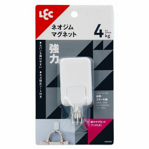 メーカー レック(LEC) 商品カテゴリ 止め金具・フック>マグネットフック 発送目安 3日〜4日以内に発送予定(土日祝除) お支払方法 銀行振込・クレジットカード 送料 送料無料 特記事項 その他 本体サイズ(約):W40xD40xH85mm【br】取り付け方法:マグネット粘着テープ【br】荷重(約):【最大保持荷重】4kg【br】包装形態:ブリスター台紙(1台紙1個付) ◆ 支持部:ABS樹脂【br】フック:ステンレス鋼線【br】すべり止め:熱可塑性エラストマー
