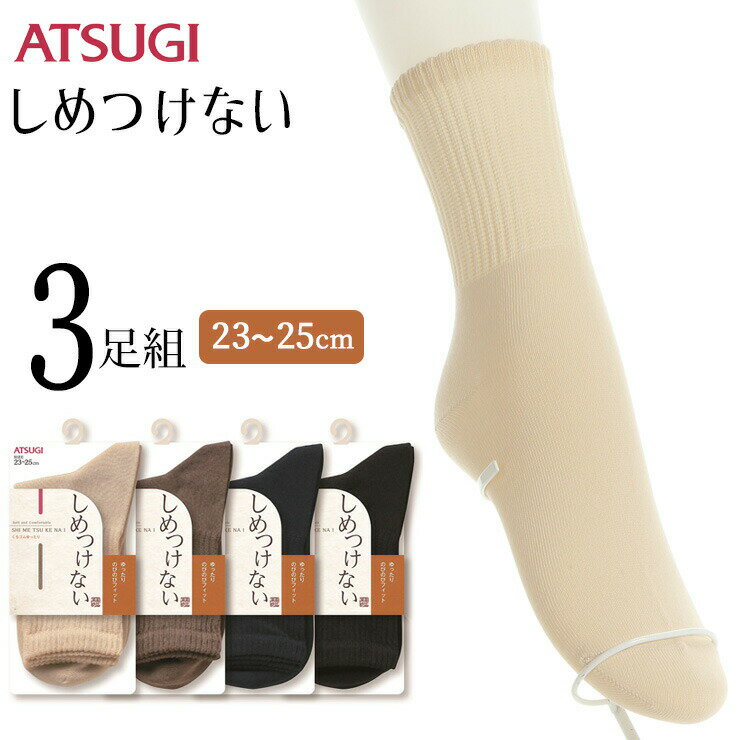 素材 レーヨン、綿、ポリエステル、ナイロン、ポリウレタン サイズ 23〜25cm 特徴 アツギ・しめつけない靴下 足を締め付けず、リラックスしてはいて頂ける心地よい靴下のブランド。 こだわりのよく伸びるソフトでゆったりしたクチゴムが特徴です。 日々の暮らしに、リラックスタイムに、介護に、スポーツに、旅行に、様々なシーンでお使い下さい。 ●洗い替えに便利な同色3足組 ●18cm丈 ●2×1リブ柄 ●クチゴムゆったり 履きやすく締め付け感がなくやさしい履き心地 ●つま先縫い目がゴロつかない 縫い目が盛り上がらず、フラットで肌にあたらない ●つま先・かかと補強 ●ノンサポーティ ●抗菌防臭加工 ●足型セット加工 配送 ネコポス配送可能商品です。 (1セットまで) ご注意 ※ネコポス(メール便)は日時指定のご利用はいただけません。 ※日時指定をご利用の場合は宅配便送料に変更させていただきます。 ■PC・スマートフォンの各メール設定により、当店からのメールが届かない場合がございます。迷惑メールフォルダ、受信設定等をご確認ください。 ■画面上と実物では多少色具合が異なって見える場合もございます。ご了承ください。
