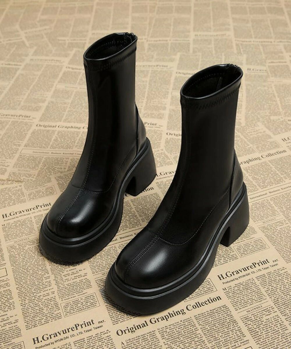 厚底ワークブーツ レディース ラウンドトゥ コンフォートブーツ 太ヒール 疲れにくい 靴 韓国風履きやすいくつ 通勤通学シューズ歩きやすい 英国風靴秋冬 美脚 ステッチブーツ 黒フロントに施されたステッチがデザインのアクセントとなり、シンプルながらも印象的な仕上がりのショートブーツです。着脱が簡単なバックジッパーが付いているため、忙しい日でも素早く履けます。ラウンドトゥデザインで、つま先部分に余裕があり、長時間の歩行でも足に負担がかかりにくいです。カジュアルからフォーマルまで、幅広いスタイルに合わせられます。デニムパンツやレギンスと合わせるとカジュアルな印象に、スカートやドレスと合わせるとフェミニンな印象になります。甲素材:合成皮革底素材:合成底カラー:ブラックサイズ:22.5cm/23.0cm/23.5cm/24.0cm/24.5cm[22.5]長さ:約22.5cm 幅:約10.0cm 筒丈:約14.0cm[23.0]長さ:約23.0cm 幅:約10.2cm 筒丈:約14.0cm[23.5]長さ:約23.5cm 幅:約10.4cm 筒丈:約14.5cm[24.0]長さ:約24.0cm 幅:約10.6cm 筒丈:約14.5cm[24.5]長さ:約24.5cm 幅:約10.8cm 筒丈:約14.5cmヒール(全サイズ):約7.0cmプラットフォーム(全サイズ):約3.0cm重さ(両足):約787g-814g生産国:中国※すべて平置きサイズです(採寸方法違いより、多少の誤差がございますので、ご了承ください)。※海外輸入品のため、商品の細部仕様は多少異なる場合がございます。予めご了承の上、ご注文お願い致します。22.5cm : 【筒丈】14cm23.5cm : 【筒丈】14.5cm24.5cm : 【筒丈】14.5cm