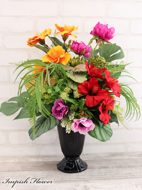 アーティフィシャルフラワー(造花)使用 ■サイズ: 幅:48 奥行:26 高さ:50 (cm) ■主な使用造花: ハイビスカス ギフト対応 →その他中アレンジはこちら ※用途インテリア 開店祝い 開業祝い 新築祝い 結婚祝い 誕生日 プレゼント 贈り物 祝い花 ※品名造花 造花アレンジ 造花アレンジメント アートフラワー アートフラワーアレンジ アートフラワーアレンジメント アーティフィシャルフラワー アーティフィシャルフラワーアレンジ アーティフィシャルフラワーアレンジメント 高級造花 インテリアフラワー フラワーアレンジメント アレンジフラワー