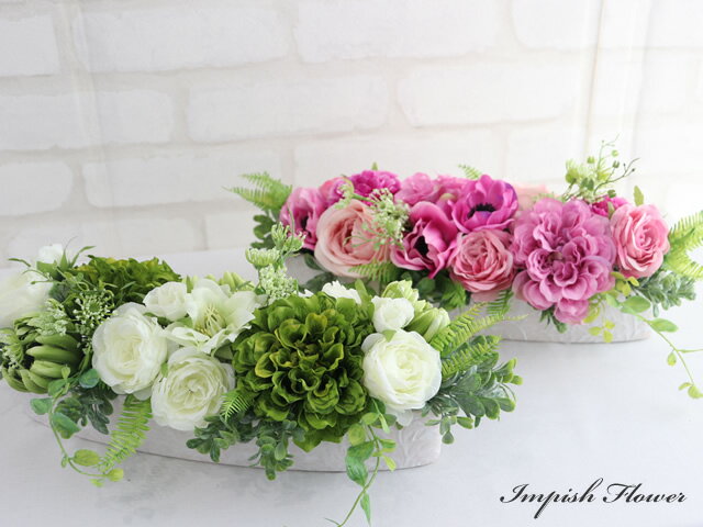 紫とピンクのバラの色合いが美しく、華やかで冬の時期にオススメなアレンジです。 サイズ:約高さ37cm×幅42cm×奥行28cm*商品の仕様は変更になる場合がございます*受注制作のため数日お時間をいただく場合がございます シルクフラワーとは、シルクの様な光沢のある生地を用いて作られ、 生花のような花びらのグラデーション・葉や茎の樹皮や節までリアルを追求した高品質な人工的な花のことをいいます。 他にも、一般的な造花を指すアートフラワーと呼ばれることもあります。 また、近年では呼び名が統一され、生花の代わりとなる人口的な花のことを全てまとめてアーティフィシャルフラワーと呼ばれる様になりました。 ☆ギフト対応の詳細はこちら お正月のフラワーアレンジ 商品一覧はこちら