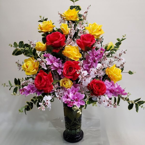 商品について 〇この商品は光触媒コーティングされており、ほこりが付き難く、とても長い間、美しさを保ち続けます。 〇開店祝・新築祝・各種御祝に豪華で贈って喜ばれます。 〇会社フロント、豪華な応接室に最適です。 〇赤と黄色のバラで華やかアレンジです [使用花材] ・プレミアム Art Flower(造花) ・造花【バラ,デンフアレ】 ・切子花瓶 [サイズ] 高80cm×巾50cm 注意事項 当店のスタッフによる手作業でアレンジします。 一品一品、多少の個体差が生じます。 モニター環境により多少色合いが異なります。バラMIXアレンジ-【バラ2色・デンフアレ・オンシ他】高80cm×巾50cm造花・光触媒(高級切子花瓶使用しました) 高80×幅50の豪華なアレンジ 光触媒コーティングで空気清浄も行います。 ※花言葉:赤いバラの花言葉は「あなたを愛してます」「愛情」「美」「情熱」「熱烈な恋」 黄色いバラの花言葉は「友情」。(ネット〜引用) メッセージカード、祝札等ご希望の方は、 右下に表示の【この商品についての問合せ】にて、記入指示をしてください。