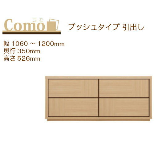 メーカー希望小売価格はメーカーカタログに基づいて掲載しています サイズ 幅1060〜1200×奥行き350×高さ526mm 仕様 前面・天板・側板/強化プリント化粧板(ガイア) 前面・天板(GW・GM)/グロスシート(艶あり) 側板/プリント化粧板 引き出し内材/桐(共通) 可動仕切りフレーム×1 日本製 搬送状態 完成品 配送 北海道・沖縄・離島へのお届けは別途送料がかかります。 備考 受注生産のためお届けまでに4〜5週間ほどかかります。 ご注文後の変更・キャンセルはお受けできません。 幅は1cm単位で指定可能です。 設置のゆとり1cmを見てください。 ベース部のカラーはブラックをご指定いただけます。コモはサイズ・カラーのバリエーションが豊富なフルチョイスシステム リビングボード・テレビボード・ダイニングボード・キッチンカウンター下・寝室・子供部屋・クロークなど住まいのどこでもお使いいただけます。 引出し前部は木目をタテ・ヨコにレイアウトし、やさしさにこだわりました。(グロス色は前板の貼り分けはありません) コモのシリーズはチェストとキャビネットを組み合わせてご使用いただけます。