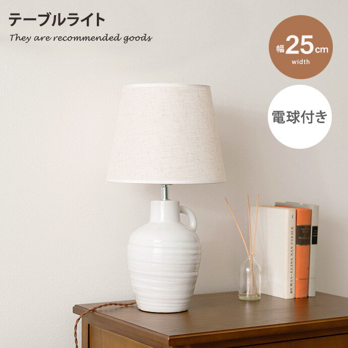 商品説明陶器とファブリックの組み合わせ陶器とファブリックの組み合わせが高級感のあるモダンな雰囲気にお部屋を演出してくれます。デスクやソファー・ベッドサイドにもテーブルライトとしてだけでなくソファーやベッドサイドなど色んな場面で活躍してくれます。シェードの角度調整も可能ファブリックでできたシェードは角度調節が可能なので読書タイムなどシーンに合わせてお好みの場所を照らすことができます。手元のスイッチでON/OFF切り替えコードにはON/OFF切り替えのスイッチがついている為、ソファやベッドに居ながら簡単にライトを切り替えすることができます。サイズ説明商品重量 約1.5kgサイズ幅25cm×奥行25cm×高さ42cm材質陶器、アルミ、布脚部組立区分組立式お届け4〜7日営業日以内の発送予定となります。午前・午後のお届け時間のご指定が可能です。 備考【梱包サイズ】30cm×30cm×50cm【商品重量】約1.5kg