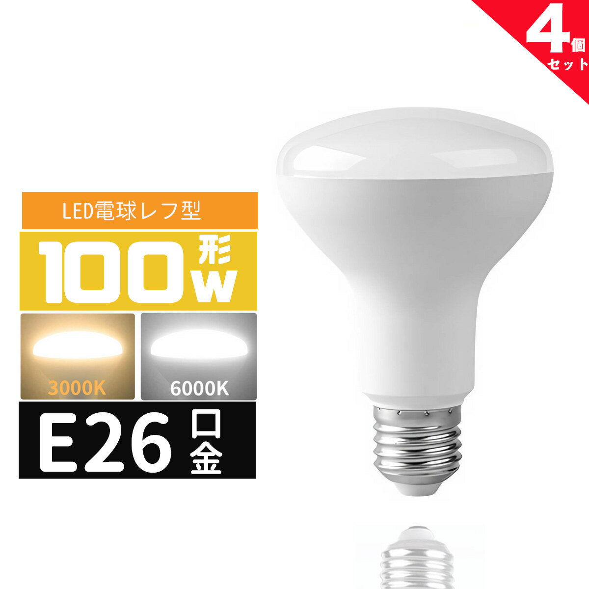 ■LED電球の特徴 白熱レフ電球サイズなので、器具にすっぽり入ります。 白熱電球と同等の光り方を実現。 頻繁につけたり消したりしても寿命が縮むことがない。 電気をつけるとすぐに明るくなる(点灯スピードが早い) 衝撃などに強く壊れにくい。紫外線を出さないため虫が寄り付かない。寿命が大変長いため電球交換の手間がかからない。 二酸化炭素の排出量が少なく環境に優しい。 水銀を含有していない、環境に配慮した電球です。 発熱量が少ない。 ■商品仕様 商品名:LED電球 レフ形 E26 100W相当 e26口金 電球 LEDライト 100Wレフ型 100形相当 LED電球E26 電球色 昼光色 適応口金:E26 定格入力電圧:100V 周波数:50/60Hz 定格消費電力:9W 全光束:980lm 調光:非対応 色温度:昼光色(6000K) 電球色(3000K) 平均演色評価数:Ra>80 ビーム角:120°(光が広がるタイプ) 材質:アルミニウム・PC 寸法:Φ63*H100mm 安心日本PSE規格準拠 ■注意事項: 調光機能のついた電球器具や回路には使用しないでください。 水滴がかかる場所、結露が起こる環境では使用出来ません。 リモコンの付いた電球器具や回路には使用できません。 LED光源にはバラツキがあるため、同じ商品でも個体差が出る場合がございますので、ご了承下さい。 推奨使用周囲温度は-5〜38度です。 LED電球に対応しております照明器具にてご使用下さい。照明器具は説明書のご確認、各メーカーへ問い合わせ下さい。 ほたるスイッチでの使用不可(ほたるスイッチには微弱電流が絶えず流れており、消灯時にLEDシャンデリア球が微弱電流を受けて点滅する現象が起きる場合がございます。) 関連商品LED電球 レフ形 E26 60W相当 e26口金 電球 LEDライト...LED電球 レフ形 E26 60W相当 e26口金 電球 LEDライト...LED電球 80W形 E26口金 エジソン電球E26 LEDフィラメン...6,000円4,800円5,800円LED電球 レフ形 E26 100W相当 e26口金 電球 LEDライ...LED電球 レフ形 E26 100W相当 e26口金 電球 LEDライ...LEDボール球型 e26 ボール球型 80W形相当 e26口金 電球G...7,200円3,780円5,100円LEDボール球型 e26 ボール球型 40W形相当 e26口金 電球G...LED電球 レフ形 E26 100W相当 e26口金 電球 LEDライ...LED電球 レフ形 E26 100W相当 e26口金 電球 LEDライ...5,200円1,880円980円LED電球 レフ形 E26 60W相当 e26口金 電球 LEDライト...LED電球 レフ形 E26 60W相当 e26口金 電球 LEDライト...LED電球 レフ形 E26 60W相当 e26口金 電球 LEDライト...2,980円1,480円790円LED電球 レフ形 E26 100W相当 e26口金 電球 LEDライト 100Wレフ型 100形相当 LED電球E26 電球色 昼光色 取り替えるだけで省エネ・長寿命!LED電球!集光性の高い電球。。点灯直後からすぐに明るい。 ■LEDレフ形電球の特徴 ●白熱レフ電球サイズなので、器具にすっぽり入ります。 ●白熱電球と同等の光り方を実現。 ●集光性の高い電球 ●頻繁につけたり消したりしても寿命が縮むことがない。 ●電気をつけるとすぐに明るくなる(点灯スピードが早い) ●衝撃などに強く壊れにくい。 ●紫外線を出さないため虫が寄り付かない。 ●寿命が大変長いため電球交換の手間がかからない。 ●二酸化炭素の排出量が少なく環境に優しい。 7