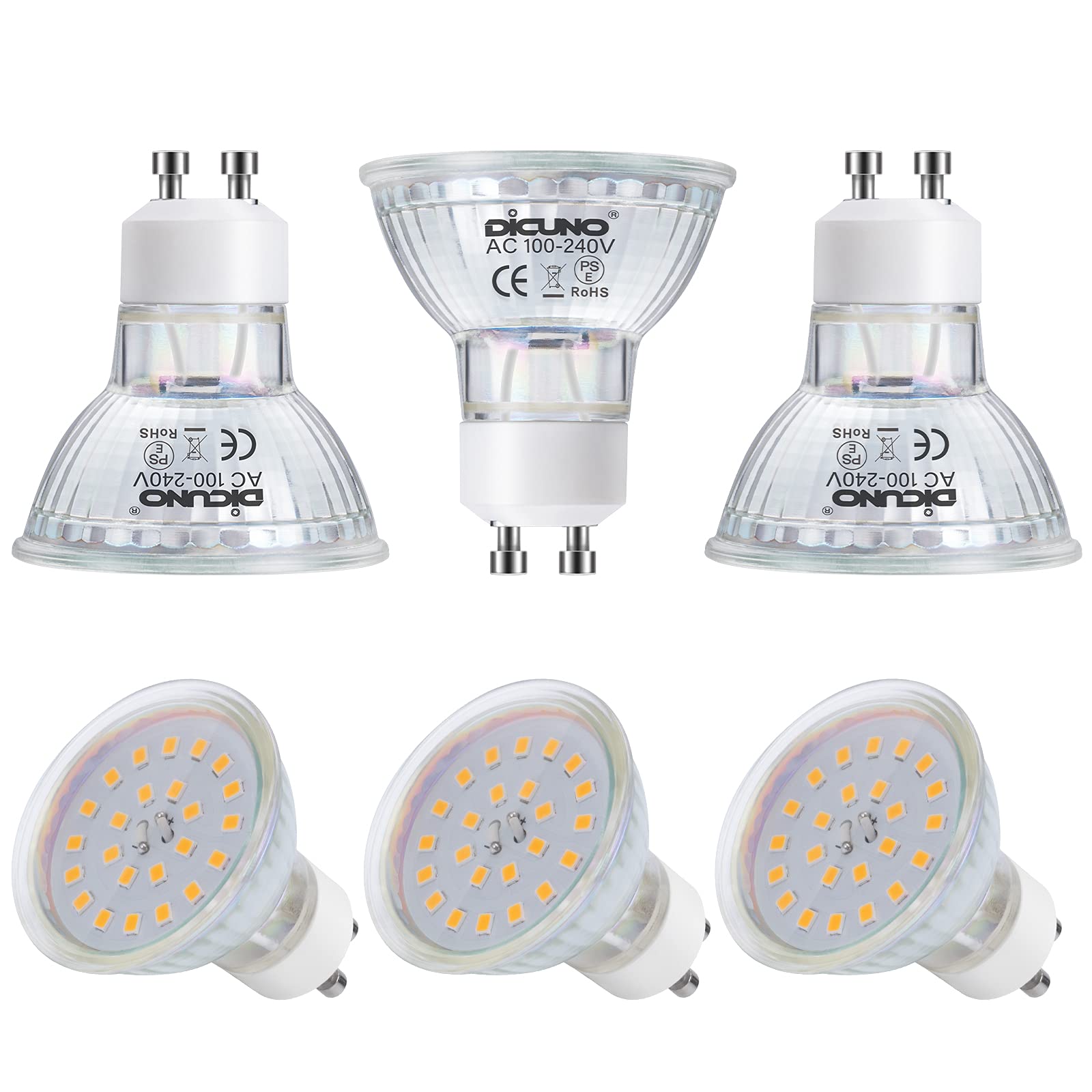 ・【商品仕様】口金:GU10、定格電圧:100-240V、ルーメン:650lm、省エネ:6W=60Wハロゲン電球の明るさ、色温度:5000k(昼白色)、CRI:85、ビーム角度:120°。・【良い材質】ガラスなので、高透過率で光りの艶を出します。長時間の使用で表面が黄ばみになり、光に影響を与えることを心配する必要がありません。・【省エネ】60Wのハロゲン電球を代わって、6WのGU10 led電球は十分な明るさを提供できる同時に、90%以上の電気を省けます。家計にすごく優しいです。また、交換の手間が少なく、廃棄物が低減されます。・【より快適】紫外線、赤外線をほとんど含まないため、紫外線による室内の日焼けや色あせ、赤外線による熱の心配はありません。虫なども寄りにくく、清掃の手間を減らせます。・【一年保証】CE|RoHS|PSE認証済。ご購入日より一年間の保証を提供いたします。万が一商品に不良またはご不明なところなどがございましたら、お気軽にsupport.jp@dicuno.comまでご連絡ください。