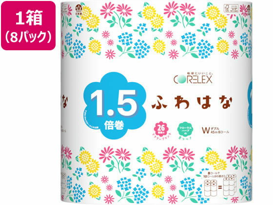 【商品説明】再生紙100%リサイクルトイレットペーパー。回収された牛乳パックをリサイクルパルプとして使用。全部で26種類のフラワープリント。トイレットペーパーは1ロールごとに異なる花柄が楽しめます。使用時に肌に触れることを考慮して、2枚重ねの内側にプリントしています。エンボス加工で肌触りの心地よいふんわりやわらかなトイレットペーパーに仕上げました。【仕様】●長さ:45mダブル●紙幅:107mm●芯径:38mm●材質:古紙パルプ100%●芯あり、ミシン目あり●ハーブの香り付き●注文単位:1箱(8ロール入×8パック)●グリーン購入法適合●GPNエコ商品ねっと掲載【備考】※メーカーの都合により、パッケージ・仕様等は予告なく変更になる場合がございます。【検索用キーワード】コアレックス こあれっくす CORELEX ふわはな フワハナ リサイクルトイレットロール トイレットペーパー トイレットティシュー トイレットロール 1箱 8パック 64個 64ロール 45m 45メートル ミシン目あり 芯あり ダブル エンボス加工 花柄プリント 1.5倍巻き 香り付き ハーブの香り リサイクルパルプ100% 紙製品 トイレットペーパー R815KG古紙パルプ100%リサイクルトイレットペーパー