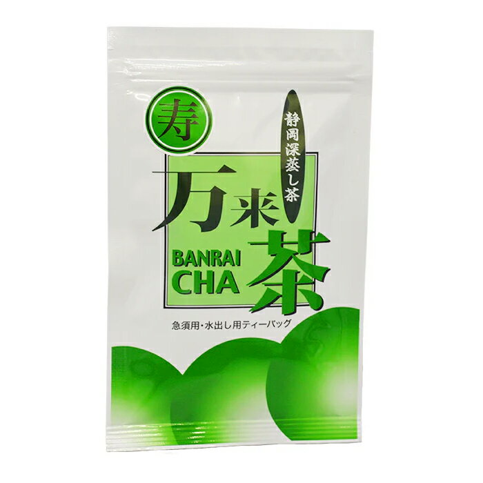 静岡深蒸し茶 万来茶(寿) 名称 深蒸し茶ティーバッグ 原材料名 緑茶(静岡産) 万来茶・寿(ことぶき)の特徴 一番茶の最盛期、太陽の光をたっぷり浴びた茶葉が原料。程よい火入れを施し、しっかりとした深みのある味わい深蒸し茶ティーバッグに仕上げました。 内容量 1,200g(4g×10個入×30袋) 賞味期限 本体裏面下部に記載 飲み方 冬季は急須で温かく、夏季は水出しで、四季を通じてお楽しみいただけます。温かく淹れる場合急須にティーバッグを1個入れてお湯を注ぎます。急須の湯は1回毎に出し切って下さい。1パックで3煎は充分に楽しめます。冷やして淹れる場合冷水用ポットに水1リットルとティーバッグ2個を入れ、冷蔵庫で冷やします。お好みの濃さになるまで菜箸やマドラーなどで攪拌してお召し上がり下さい。 濃い綺麗な緑が楽しめます。 保存方法 高温多湿を避け、移り香にご注意下さい。 配送・お支払いについて 代引はご利用いただけません。予めご了承ください。 製造元 石川製茶株式会社(島田市) 販売者 株式会社アド・パック 企画販売・広告文責:株式会社アド・パック 0120-54-1617 区分:日本製・食品