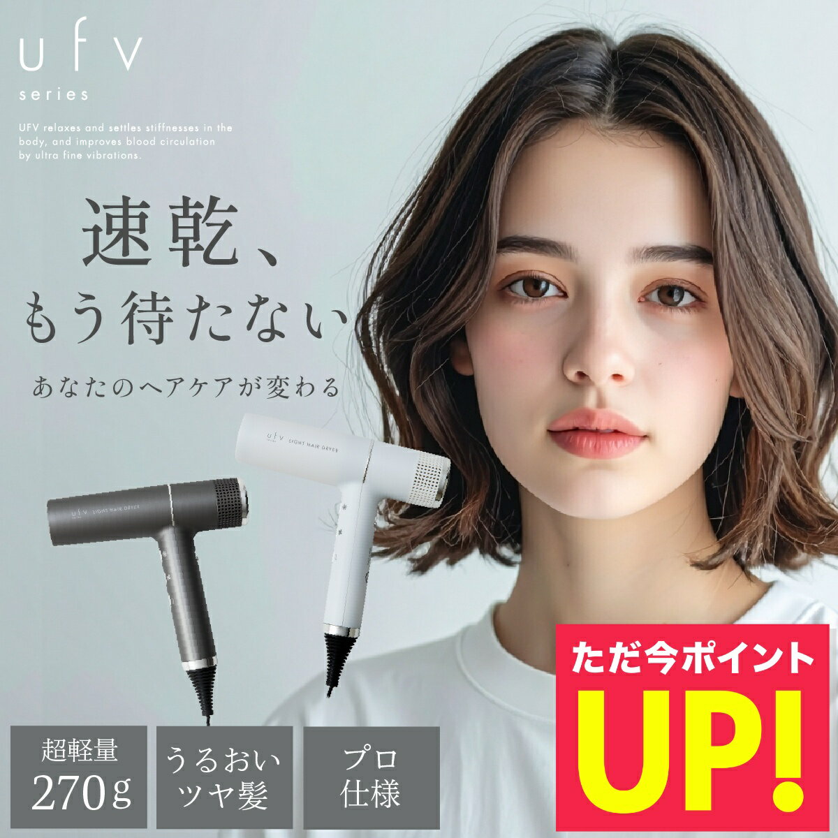 ufv ライトヘヤードライヤー毎日のヘアドライを「時短 × ツヤ髪 × 低ダメージ」に変えるもっと自分らしく、輝く仕上がりへ。超軽量&業務レベルの速乾性能で注目される「ufvライトヘアードライヤー(ufv DEVICE シリーズ)。空気中の水分を微細振動で捉えて“潤いを残しつつ艶めく髪へ導く”独自技術で、ドライヤーの常識を塗り替えます。■ 超軽量270g、腕が疲れにくい本体重量は約270g(りんご1個分)。長時間使っても腕が疲れにくく、旅行やジムでも活躍します。■ 最大風速58m/s:プロ仕様の速乾力毎秒58m/sの超風速エアーを送り出し、サロン品質の速乾を実現。毎分110,000回転の高回転BLDCモーターで、時短と美髪を両立。■ ufv(超・微振動)加工で潤いキープ本体に施されたufv加工により、空気中の水分を髪に届けながら乾かすことで、自然な艶と潤いを与えます。■ 冷風&定温制御で美髪サポートクールショットや定温乾燥モードを搭載。熱ダメージを抑えながら、スタイルを美しくキープします。■ オートクリーン&メモリー機能ファン逆回転でホコリを除去するオートクリーン機能、好みの風量と温度を記憶するメモリー機能など、毎日の使いやすさも充実。■ サロン仕様のパワフル出力最大出力1200W、AC100V対応。ご家庭でもサロン品質の速乾体験が叶います。■ 豊富なカラバリ&スタイリッシュ「スペースグレイ」「インテリジェンスホワイト」の2色展開。洗練されたデザインで、男女問わず使いやすいカラーラインナップです。ストレスフリーな速乾とツヤを、日常に。軽さ・速乾・潤いケア。すべてを高次元で両立したufvライトヘアードライヤー。プロ品質をあなたの日常に。 商品詳細 商品名 ufv LIGHT HAIR DRYER(ライトヘアードライヤー) 品番 / JAN スペースグレイ:4582258268938 インテリジェンスホワイト:4582258268945 サイズ 約 幅210mm × 奥行き48mm × 高さ170mm(ノズル含まず) 重さ 約 270g(本体のみ) コード長さ 3m 電源 AC100V 50/60Hz(日本国内専用) 消費電力 最大 約1200W 風速 最大 約58m/s 安全装置 サーモスタット 主な機能 ・ufv(超・微振動)加工 ・風量3段階/温度4段階(無風含む)調節 ・定温制御モード(HOT/COLD) ・クールショット ・オートクリーン機能(ファン逆回転) ・メモリー機能(設定記憶) ・軽量設計 保証期間 メーカー保証 1年 付属品 フード×2、ディフューザー×1、取扱説明書(保証書含む) 販売元 株式会社ビーエイチ(BH / Beauty&Health) 検索関連キーワード ヘアドライヤー 軽量 コンパクト 高速風 速乾 美髪 低ダメージ ツヤ髪 ufv 微振動 美容家電 サロン品質 クールショット 温冷切替 オートクリーン メモリー機能 スタイリッシュ ギフト プレゼント 白 黒 ヘアケア 自宅美容 プロ仕様 家電 関連商品【正規品&保証付】ラディアント ヘアドライヤー ディモア 大風量 速乾...クレイツ スパドライヤー ボリューミン 根元立ち上げ ドライヤー大風量...サロニア ドライヤー スムースシャイン プレミアム ブラック ホワイト...39,600円9,980円13,200円マッサージ機 マッサージ器 プチローラー petiteroller フ...【正規品販売店】キャビスパ 360 キャビテーション ヤーマン YA-...【8000円OFFクーポン配布中!!】P-UP エクステラ ケミストリ...35,970円37,400円24,200円【正規品】radiant ラディアント シルクプロアイロン プロ仕様 ...【正規品販売店】ヤーマン 脱毛器 レイボーテ Go VIOプラス 脱毛...【正規品】SALONIA サロニア スムースシャイン ストレートアイロ...22,000円39,800円13,200円関連ワード: ヘアドライヤー ドライヤー hair dryer ufv ドライヤー light hair dryer コンパクト 高速風 速乾 美髪 低ダメージ ツヤ髪 ufv 微振動 美容家電 サロン品質 クールショット 温冷切替 オートクリーン メモリー機能 スタイリッシュ ギフト プレゼント 白 黒 ヘアケア 自宅美容 プロ仕様 家電 超軽量 270g 速乾性 ヘアケア家電