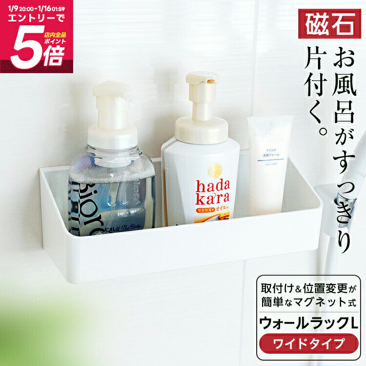 システムバスの壁面収納に最適! 磁石の力でビタッとついて、浴室の壁を傷つけません。 洗顔料やシャンプー、リンスなどのチューブやボトル、洗剤など、様々なお風呂グッズをすっきり収納! 当店の人気マグネットラックの収納力をUPさせ、太いボトルにも対応できる奥行きになりました! 位置変更も簡単なマグネット式、水切り付きなのでお掃除も簡単♪ インテリア性抜群のおしゃれで奥行きの深いラック。収納力抜群のワイドタイプLサイズです。 ウォールラックLワイド カラー ホワイト 耐荷重 4kg サイズ 幅32.8×奥行11.8×高さ10.4cm 材 質 本体=ABS樹脂/ラバーマグネット スベリ止め=ポリウレタン-関連商品- ▽磁石でつく浴室収納をチェック▽ ▽お風呂用品をチェック▽