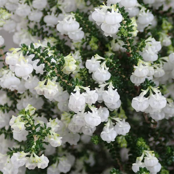 白いスズランのような花を咲かせるエリカエリカ:スズランエリカ4.5号鉢植え★入荷から日数が経ったためセール価格となりました。商品の状態は画像と異なる場合があります。★白い雪をまとったツリーのような美しい姿を楽しめるスズランエリカです。開花期が長いので、スズランのような可憐な花を3ヶ月以上お楽しみいただけます。スズランエリカは南アフリカ原産のエリカの一種で通常は春に開花します。学名Erica canaliculataタイプツツジ科エリカ属の耐寒性常緑低木栽培適地関東地方以南の太平洋側樹高20〜60cm開花期12〜4月(開花調整後)花径3〜4mm花色白用途鉢植え日照日向むき栽培方法:耐寒性がやや弱いので、明るい室内で冬越しさせてください。日照と冷涼な気候を好むので、基本的には日当たりのよい戸外で栽培します。真夏はやや半日陰の涼しい場所に置きます。鉢用土が水はけの良い配合になっています。1日1回、鉢底から水が出るまで十分に水や利子、暖房機の近くや乾燥機の風が直接当たる場所に置かないようにしてください。咲き終わった花は順次摘み取り、新しい枝の伸長を促します。開花後は、弱った枝や枯れた枝などは切除し、円錐形の形を乱す枝などを切り形を整えます。その後伸びてきた芽は摘芯して伸びすぎを抑え、枝数をふやしますが、この作業は6月下旬までで終了します。購入時の鉢の大きさに対して地上部がかなり大きくなり、鉢の中で根が回ってきたら1サイズ大きな鉢に植え替えます。鉢用土は赤玉土、鹿沼土、ピートモス、バーミキュライト、パーライトの等量混合用土を使用します。肥料は夏までに緩効性肥料を置肥します。花芽分化時期の晩夏から秋に施肥すると開花しなかったり遅れたりしますのでご注意ください。4.5号(直径13.5cm)ポット植え、樹高約30cmです。促成栽培品は12月頃から開花し始めますが、自然環境下では2〜4月頃に開花します。