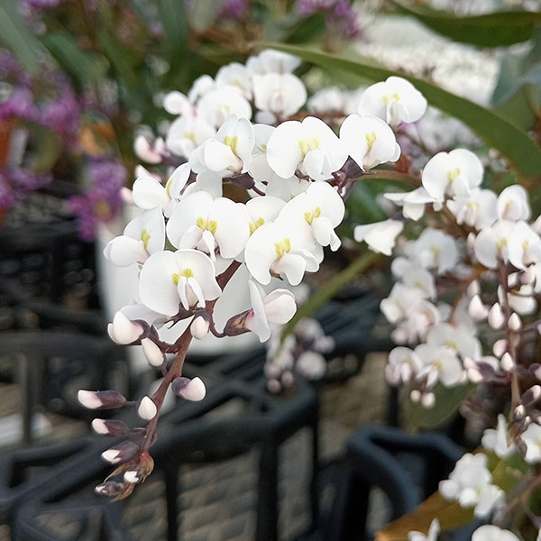 早春咲きの鉢花 丈夫なつる性多年草[26年1月中下旬予約]ハーデンベルギア: ホワイト 5号鉢植えハーデンベルギアはオーストラリア原産のマメ科の半耐寒性常緑つる性植物で、鉢花として人気です。年の暮れから春にかけて細かい花を房状に咲かせ、開花期も長く楽しめます。短期間ならマイナス4度位の低温にも耐えますが、寒さには弱いので暖地以外では鉢植えのまま育て、冬は日当たりの良い室内で管理してください。花色白色学名Hardenbergia violaceaタイプマメ科ハーデンベルギア属の半耐寒性常緑つる性植物草丈200cm開花期3〜5月用途鉢植え、吊り鉢日照日向むき栽培方法:水はけのよい土を好みます。土の乾きすぎと過湿を嫌うので注意してください。開花中は10度以上を保つようにしてください。春から秋は半日陰〜日当たりに置き、夏は西日を避けるようにしてください。花後に短く切り戻し、一回り大きな鉢に植え替えます。5号(直径15cm)プラ鉢入りです。鉢の色や形状は写真と異なる場合があります。※写真はイメージです。■1月中旬〜1月下旬頃のお届けの予約販売です。・出荷開始予定:2026年1月中旬〜・注文締切日:2026年1月12日(月)午前7時まで・ご注文同士をおまとめすることはできません。送料はそれぞれにかかります。・受付締切後にお届け日のご案内をメールいたします。お届け日指定はお受けできませんが、曜日や時間帯のご指定は承ります。・お届け日のご案内は1月13日以降にメールにてお知らせします。お届け日指定はお受けできませんが、曜日や時間帯のご指定は承ります。(受信できるアドレスにてご注文お願いします。)・品種・作柄によりお届け時期が変更になったり、お届けできなくなる場合がございます。