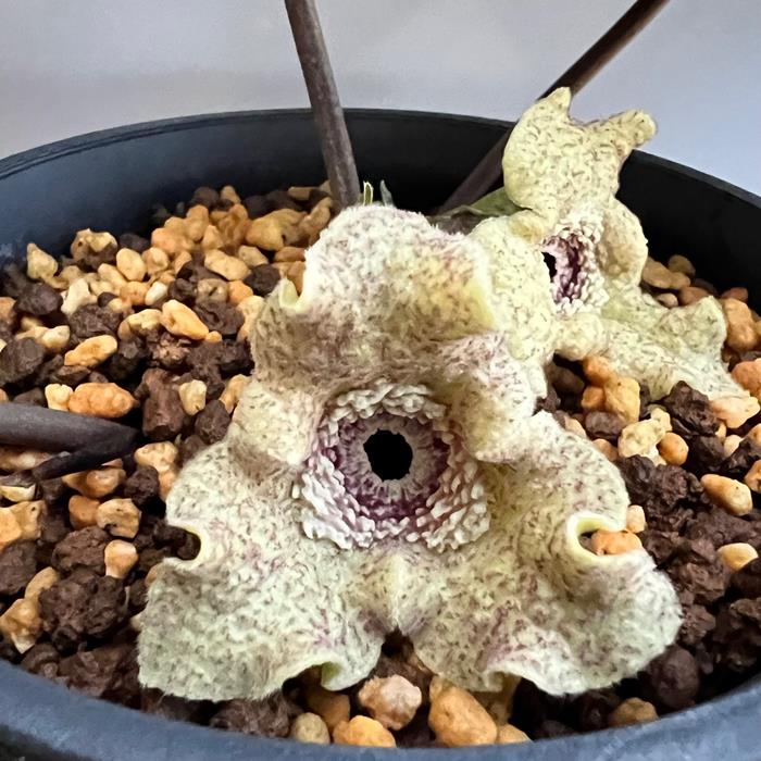 ハツシマカンアオイ 神秘のカンアオイ ハツシマカンアオイ現物個体の販売です。1枚目は見本品。2枚目が現物販売個体の画像です。お間違えないようお願いいたします。商品情報 ハツシマカンアオイ花付き個体です。価格は1ポットの価格です。 2026.2.3.撮影 1