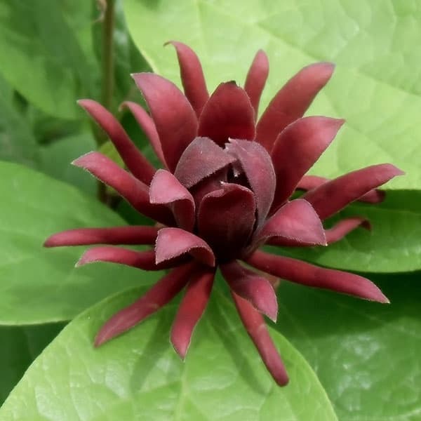 4〜5月開花 黒花蝋梅・夏咲きロウバイ・カリカンサス花木 庭木の苗/クロバナロウバイ6号ポット黒花ロウバイは晩春から初夏に咲くロウバイの仲間で、学名はCalycanthus(カリカンサス)。黒に近い暗紅褐色の魅力的な花です。ほのかな香りも楽しめます。光沢のある緑葉は秋に黄葉になります。暑さ寒さにも強く、全国で栽培可能です。日陰にも強く、大変強健なので、庭園用におすすめです。タイプ:ロウバイ科の耐寒性落葉低木植付け、植替え適期:2〜3月、11〜12月樹高:150〜200cm開花期:4〜5月植付け適地:日本全国日照:日向向き用途・庭植え・鉢植え・切花栽培方法日当たりのよい場所に植え付けます。植付け時に植え穴に緩効性肥料を施してください。小苗のうちは花が咲きませんので、小さい苗をうえつけた場合は開花は3〜5年後となります。株元から勢いよく伸びる徒長枝は花がつきませんが、ほうっておくか枝先のみを軽く剪定すると翌年は花がつきます。剪定は11〜12月または2〜3月に行いますが、太い枝を切ると枯れこむことがありますので、形を整える程度に枝先のみを剪定します。9月〜10月に根元に肥料を与えてください。お届けする苗は6号(直径18cm)ポット入り、樹高約60〜80cmです。写真は開花時のイメージですが、お届けの際はまだ苗です。お届け後は根を乾かさないように管理し、なるべく早く植えつけてください。樹高は多少変動する場合があります。夏〜秋のお届けは、葉が汚い場合がございますので、ご了承ください。※本来は秋に落葉する品種ですが、苗木のうちは葉が少なく、昨今の猛暑の影響もあるため、初夏に葉焼けや斑点がある状態〜落葉した状態となります。お届け時に葉が無い場合があります。