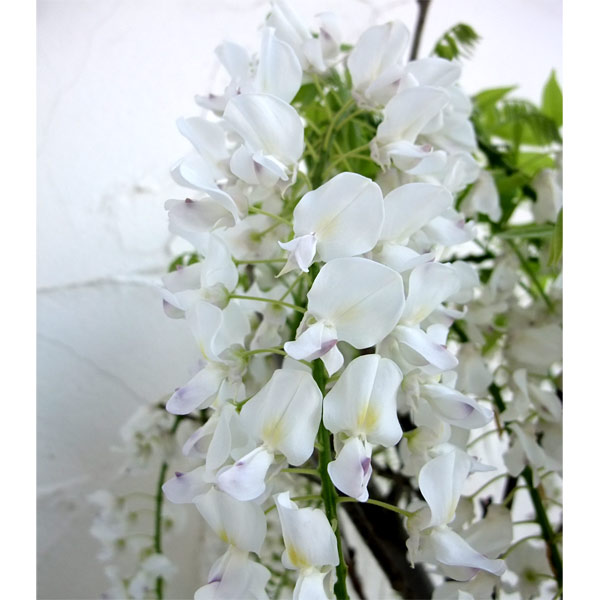白野田藤 白長 蜜源植物 4 ~6月開花 春の花木 つる性花木 庭木の苗/フジ(藤):シロノダフジ(シロナガ)7号ポットフジは晩春から季節の風物詩となっている落葉つる性木本です。棚作りが一般的でしたが、最近は1本立ちの立木つくり、スタンダード作りや、鉢植え、窓辺やアーチに這わせるなど、洋風の庭のガーデニング素材としても人気です。藤にはヤマフジとノダフジがあり、一般的に見られるのはノダフジです。ノダフジは花房が長く、つるの巻き方が右巻き(ヤマフジの反対周り)です。花序の基部から次々に開花するので、優美な咲き姿を長い間鑑賞できます。花後の豆果もよく目立ち、熟してはじけるとさやがくるくる巻いたリボン状になります。病虫害はほとんど見られず、強健です。生育力旺盛ですので、よく日のあたる場所ならどんどん生長し、1年で2〜3mつるがのびます。トレリスやパーゴラに誘引してください。白野田藤(シイロノダフジ)は昭和白藤(ショウワシロフジ)または白長藤(シロナガフジ)とも呼ばれます。花房は30〜60cmで、洋風建築によく似合います。タイプ:マメ科の落葉つる性木本栽培適地:北海道南部以南樹高:3〜10m開花期:4〜6月、花房30〜60cm植付け適期:11月〜3月(ポット苗は左記以外でも可能ですが、ポット内の土を崩さないように植え付けてください)日照:日向むき栽培方法:水はけ、日当たりのよい場所を好みますが、根元に日があたらなくても、つるが伸びる部分に日があたれば大丈夫です。堆肥や腐葉土を多めにすきこんで植えつけます。植え付け時は根を切らないように注意してください。11〜3月の適期に植えつける場合、ポット苗の根が回っている場合は根を切らないように注意しながらかるく根鉢をひと回り崩して植えつけます。これ以外の時期はポット内の土を崩さないように植え付けてください鉢植えの場合は表土が乾き次第水を与えます。肥料は12〜2月に寒肥のほか、開花直後にも有機肥料を施します。剪定は花後に行う初夏の剪定で余分な枝を整理して木の骨格を整え、冬の落葉後の剪定(11月中旬〜3月)で不要なつるを整理します。初夏に挿し木で殖やすことができます。お届けする苗は7号(直径21cm)ポット入り、樹高約50〜80cmです。樹形や樹高につきましては入荷時期により多少変動することがありますので、ご了承ください。写真は成長・開花時のイメージです。お届け時期により開花後となる場合や開花が翌年以降からのものとなる場合がございます。また、春先の蕾が小さい時期は植物の特性上、配送中に蕾が落ちる場合があります。 ■この商品は第二配送センターよりお届けします。下記サービスについてはお受けできません。・メッセージカード・栽培ガイドの添付・ラッピング・代金引換決済・時間帯指定は地域によりご指定がお受けできない場合があります・配送業者の指定