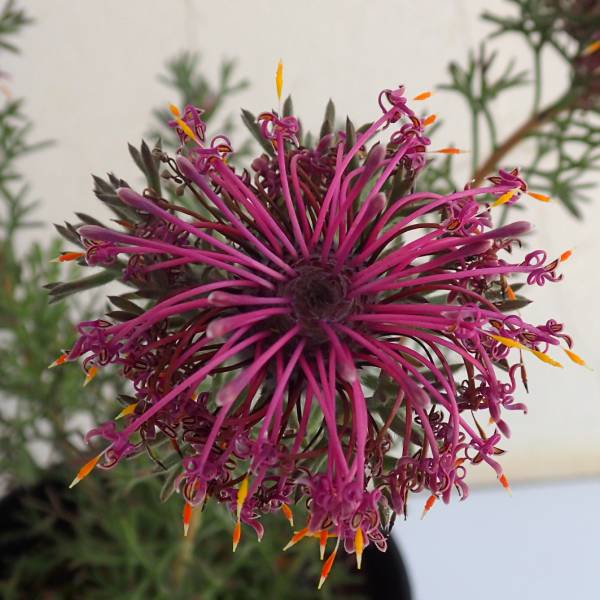 1年中サーモンピンクの美しい花を咲かせるグレヴィレア スパーブ オージープランツ花木 庭木の苗/グレビレア:サパーブ8号鉢植え★入荷から日数が経ったためセール価格となりました。商品の状態は画像と異なる場合があります。★グレヴィレア属は主にオーストラリアに250種が分布する常緑低木です。花の形と葉の切れ込みに特徴があり、非常に美しい花が咲きます。サパーブは独特の形状の葉とサーモンピンクの美しい花を1年中咲かせる魅力的な品種。樹高もコンパクトにまとまります。タイプ:グレヴィレア属の半耐寒性常緑低木日照:日向むき栽培方法:日当たりの良い場所で、排水の良い土を好みます。育てやすい品種ですが、耐寒性がやや弱いので庭植えは関東地方以南の太平洋側で。冬場は根元に腐葉土などでマルチングし、防寒してください。寒い地方では鉢植えにして冬季は室内にとりこんでください。やせ地で育つため、追肥はほとんど必要ありませんが、与える場合は春もしくは秋の年1回に控えめに与えます。強めの肥料を与えると、葉が黄色く痛む場合がございますのでご注意ください。特にリン酸肥料は与えないように注意してください。 お届けする苗は8号(直径24cm)鉢植え、樹高約70〜100cm前後です。樹高につきましては入荷時期により変動いたします。写真は成長、開花時のイメージです。グレビレア:サパーブ8号鉢植えの栽培ガイド年間通して花が楽しめる!ワイルドフラワー・グレビレア