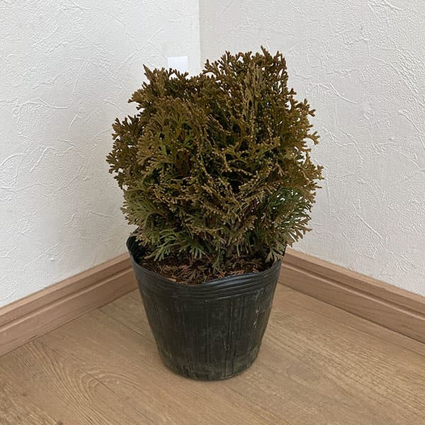 成長がゆっくりで球状の樹形になる ツヤ・オクシダンタリス ニオイヒバ花木 庭木の苗/コニファー(球状):ミニマ5号ポット小さな針葉が集まって柔らかな印象の球状の樹形をつくるニオイヒバの園芸品種で、葉に香りがある矮性のコニファーです。成長がゆっくりで刈り込みは不要。2〜3年程度をかけて60cmくらいに丸く成長します。コンパクトなので花壇の縁取りやボーダー植栽に向いています。耐寒性、耐暑性が強く、育てやすいですが、流通は少なめの品種です。葉色は深緑で、寒さに当たる冬季はシックな葉色も楽しめます。学名:Thuja occidentalis ‘Minima’タイプ:ヒノキ科の耐寒性針葉樹樹高:70〜90cm日照:日向〜半日陰栽培適地:北海道南部〜九州まで栽培方法:日当たり、水はけのよい肥沃な土壌を好みます。日照があるほうが生育がよいですが、耐陰性もありますので半日陰でも育てられます。土質を選ばず、春か秋に植え場所に腐葉土など有機物を混ぜて植えつけます。庭植えは乾く場合水やりし、鉢植えは生育中は水をきらさないようにし、休眠中は鉢土の表面が乾き始めたら与えます。年に1〜2回少なめに緩効性化成肥料等を施します。5号(直径15cm)ポット植え、樹高15-20cm前後です。樹高は入荷時期により多少変動することがあります。冬季は紅葉している状態の場合があります。写真はイメージです。■この商品は第二配送センターよりお届けします。下記サービスについてはお受けできません。・メッセージカード・栽培ガイドの添付・ラッピング・代金引換決済・時間帯指定は地域によりご指定がお受けできない場合があります・配送業者の指定コニファー(球状):ミニマ5号ポットの栽培ガイド日陰の庭におすすめのカラーリーフ