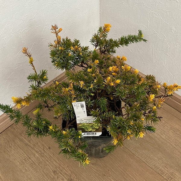 ジュニペルス 斑入りとなる希少な品種 ハイビャクシン花木 庭木の苗/コニファー(這性):サンスプラッシュ5号ポットサンスプラッシュはジュニペルス コンフェルタ(ハイネズ)の品種で珍しい斑入りとなります。グリーンとイエローが入り混じったようになる葉色は四季を通じて美しく、枝がほふくして長く伸びます。2〜3年で60〜70cmくらい水平方向に成長し、密に地面を被覆するのでグランドカバーにすると見事な景観が現れます。対潮性が高く、海岸沿いの植栽にも最適です。流通量が少ない希少な品種です。学名:juniperus conferta 'Sunsplash'タイプ:ヒノキ科の針葉樹植栽密度:9〜25鉢/平方メートル日照:日向または半日陰むき栽培適地:九州以北の日本全国栽培方法:日向または半日陰で水はけのよい肥沃な場所に植えてください。這い性のコニファーは小さい苗のうちに伸びている枝先を剪定します。鉢植えの場合は水をきらさないように管理してください。3月、6月、10〜11月に根元に緩効性肥料を施します。樹勢が衰えるとハダニがつくことがありますので、ハダニ専用の薬剤で駆除してください。5号(直径15cm)ポット植え、葉張り約10〜30cmです。葉張りは多少変動することがあります。写真はイメージです。■この商品は第二配送センターよりお届けします。下記サービスについてはお受けできません。・メッセージカード・栽培ガイドの添付・ラッピング・代金引換決済・時間帯指定は地域によりご指定がお受けできない場合があります・配送業者の指定