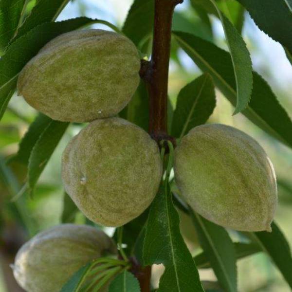 自家結実性のある矮性品種果樹の苗/アーモンド:ラビットアーモ4号ポットラビットアーモは1本で栽培可能な自家結実性のある矮性種。節間が短くコンパクトなスパータイプ(短果枝型枝変わり)のアーモンド新品種です。花の色は淡い紅色で鑑賞にも向きます。西アジア原産のバラ科のナッツ、桃の仲間なので、栽培方法は桃と同じです。果実の核の仁(じん・種子の種皮を除いた部分)を食用にします。3〜4月頃に桃に似た、真っ白のきれいな花を咲かせます。8月末ころから、果肉が成熟して果皮がはじけたら収穫してください。あるいは、実を収穫後に果肉を取り除いて1週間ほど陰干しします。その後殻を割れば、中の実がアーモンドです。炒って食べると美味です。自家結実性なので、1本で実をつけますが、近くに受粉樹(桃など)があるとより実付きがよくなります。夏から秋にかけて、緑色の枝がところどころ黒くなる場合がありますが、生育には問題ありません。タイプバラ科サクラ属の耐寒性落葉高木栽培適地年平均気温11〜15度の地域耐寒性-5℃樹高2-3m花期3月収穫期8〜9月日照日向むき栽培方法:日当たり・水はけのよい場所で育てます。肥料は窒素分を控えて有機肥料を中心に、5月、収穫後の8月下旬、そして12月に寒肥を根元に施します。新梢(1年枝)に花芽ができます。開花後30日くらいで整理落果が終わるので、摘果をして実数を調整します。実1個に対して25〜30枚の葉が必要です。木が大きくなるので、毎年12月〜2月の間に剪定を行います。日照不足になると下枝が枯れますので、混み合った側枝を間引き、枝の間に日光がはいるようにします。5〜10月にコスカシバの幼虫が幹に入ることがあります。幹に糞がつくので、木槌でたたいて圧死させます。防除は8月下旬〜9月下旬にスミチオン乳剤を太い幹に数回散布してください。お届けする苗は、4号ポット入りの接木苗、結実までの年数は3〜4年です。樹高や樹形につきましては、お届け時期により多少異なることがあります。また、夏〜秋のお届け時は葉の状態が見苦しい場合がございます。冬季は落葉の状態でのお届けです。※即席ポット植えの商品は、お届け時期により鉢上げから時間が経過しておらず根張りや小根が少なめの場合がありますが、そのまま植え付けていただければ生育に問題はございません。